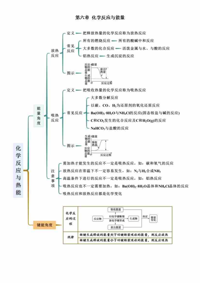 第六章 化学反应与能量-高中化学人教版必修第二册思维导图