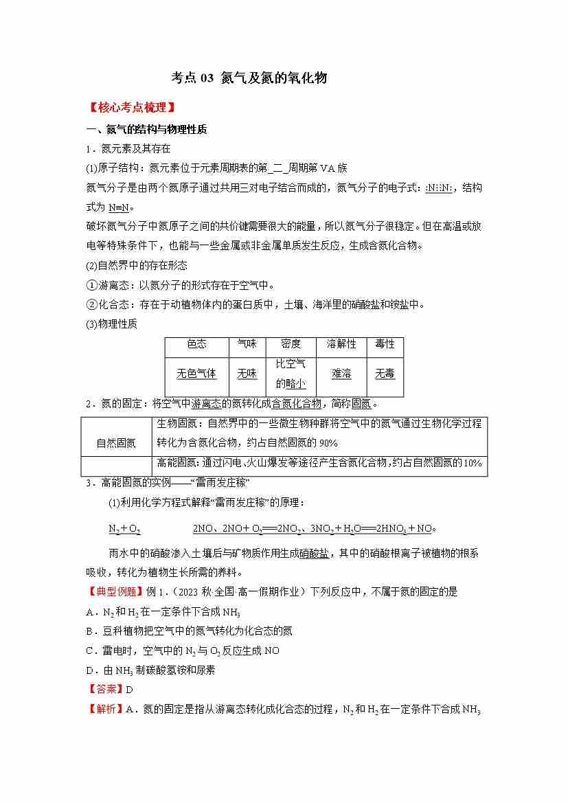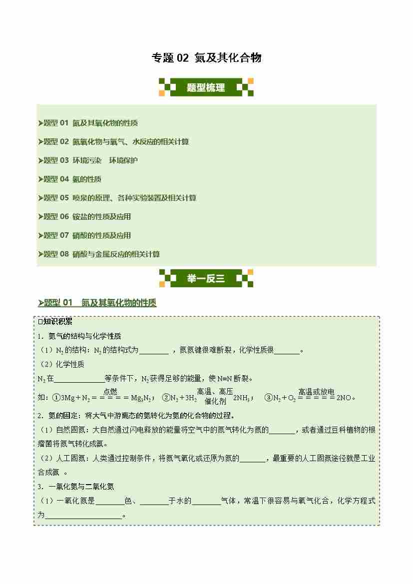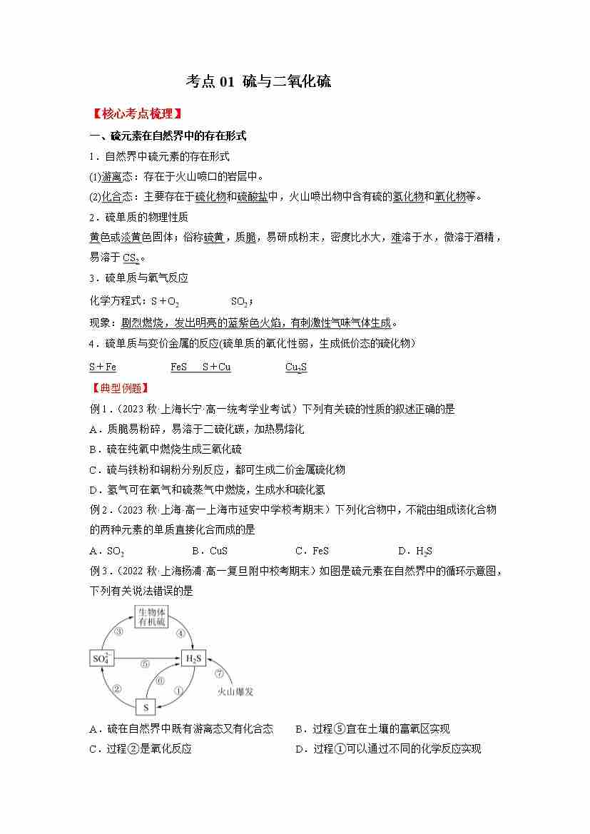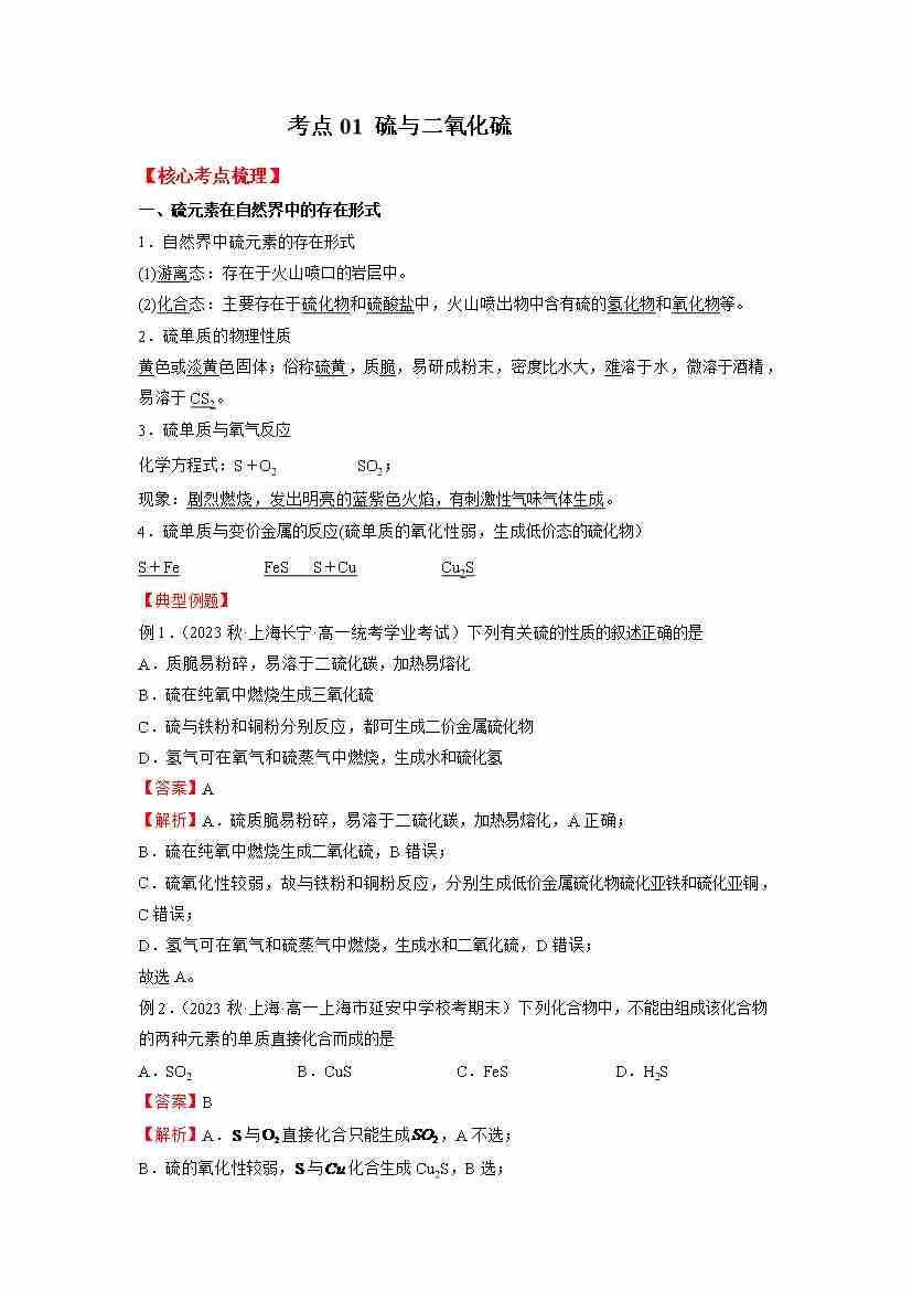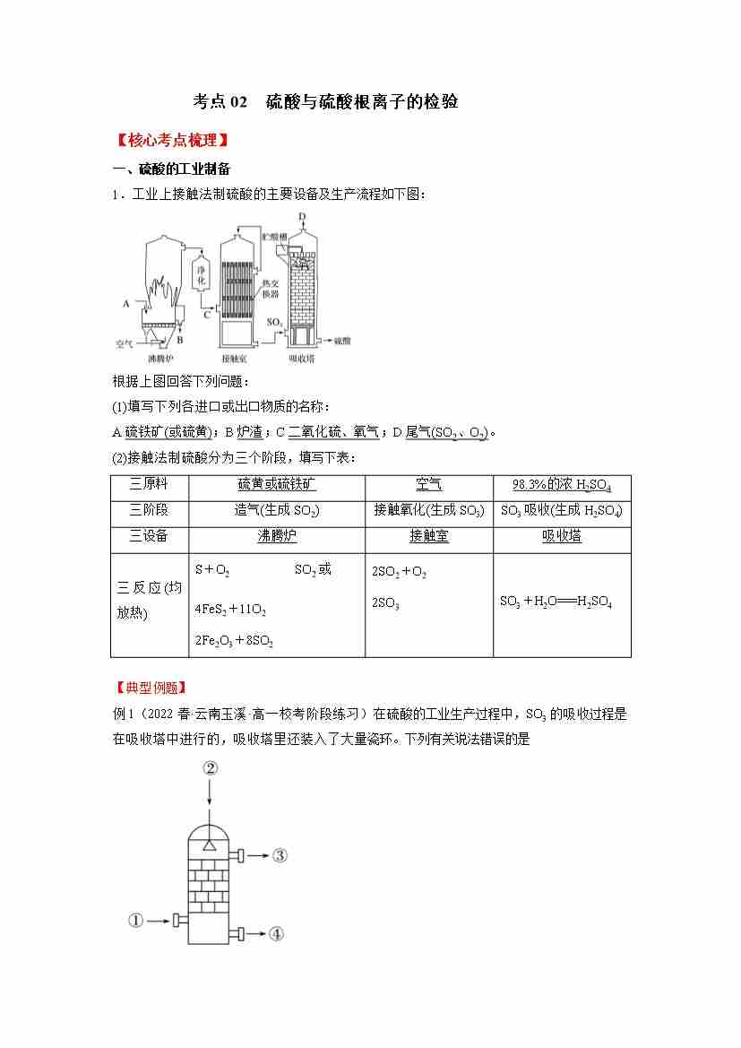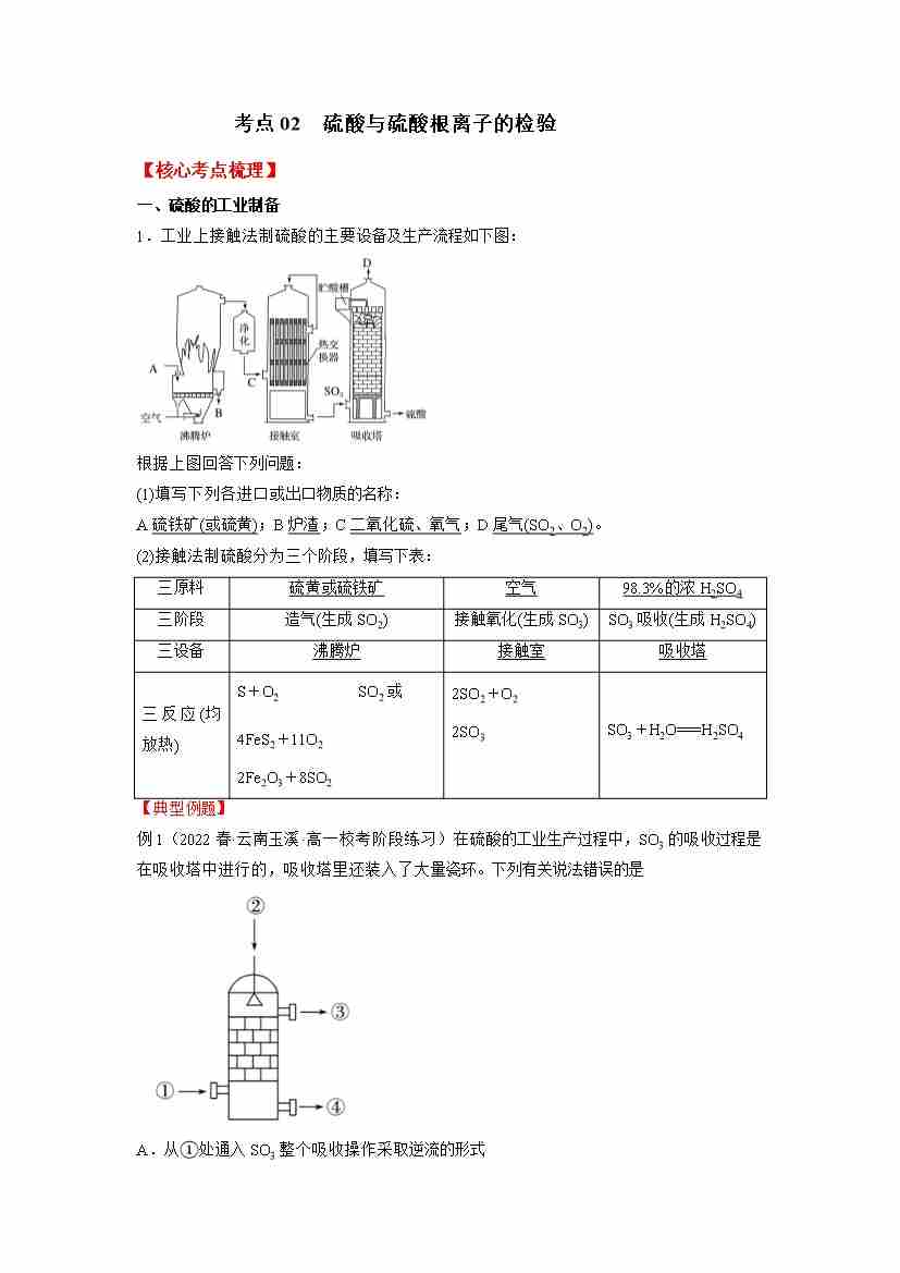 考点02 硫酸与硫酸根离子的检验(学生版)