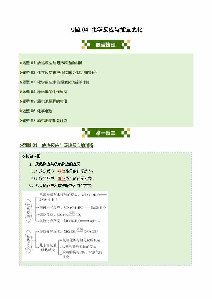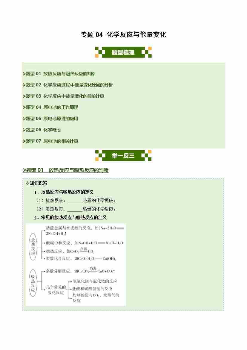 专题04 化学反应与能量变化(七大题型)(学生版)
