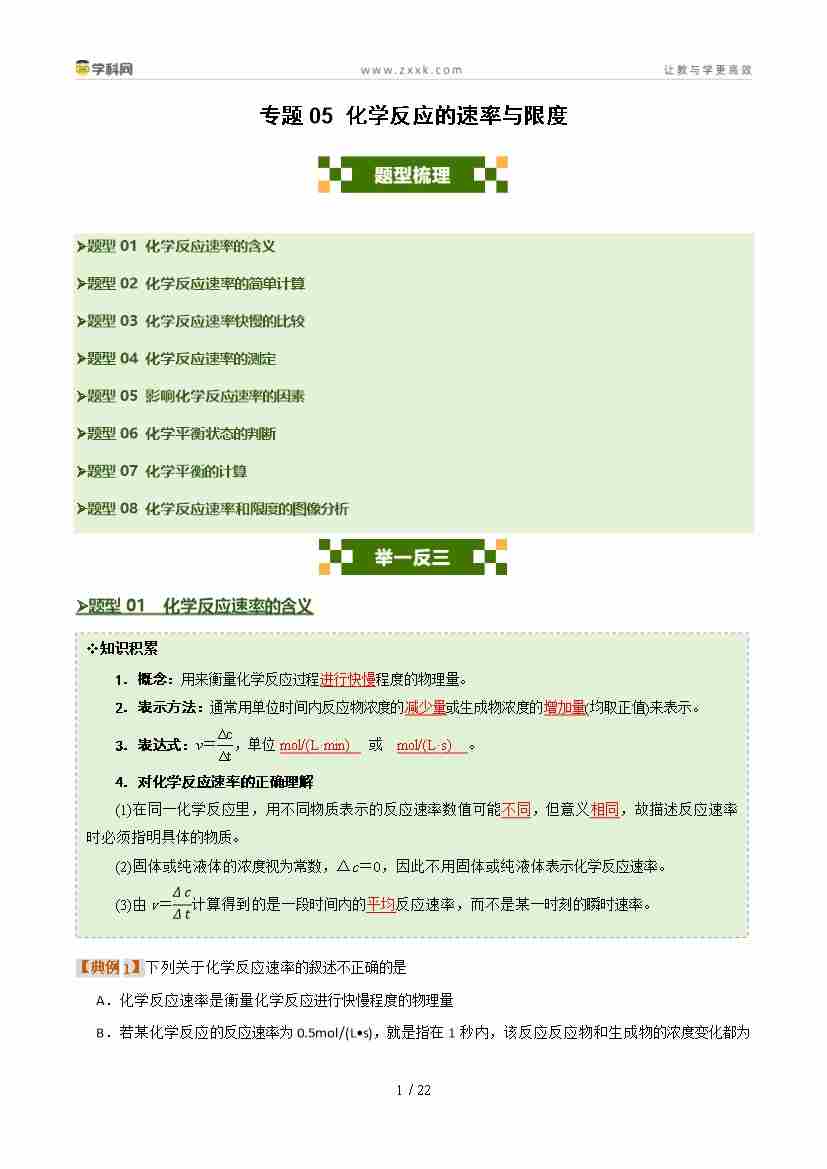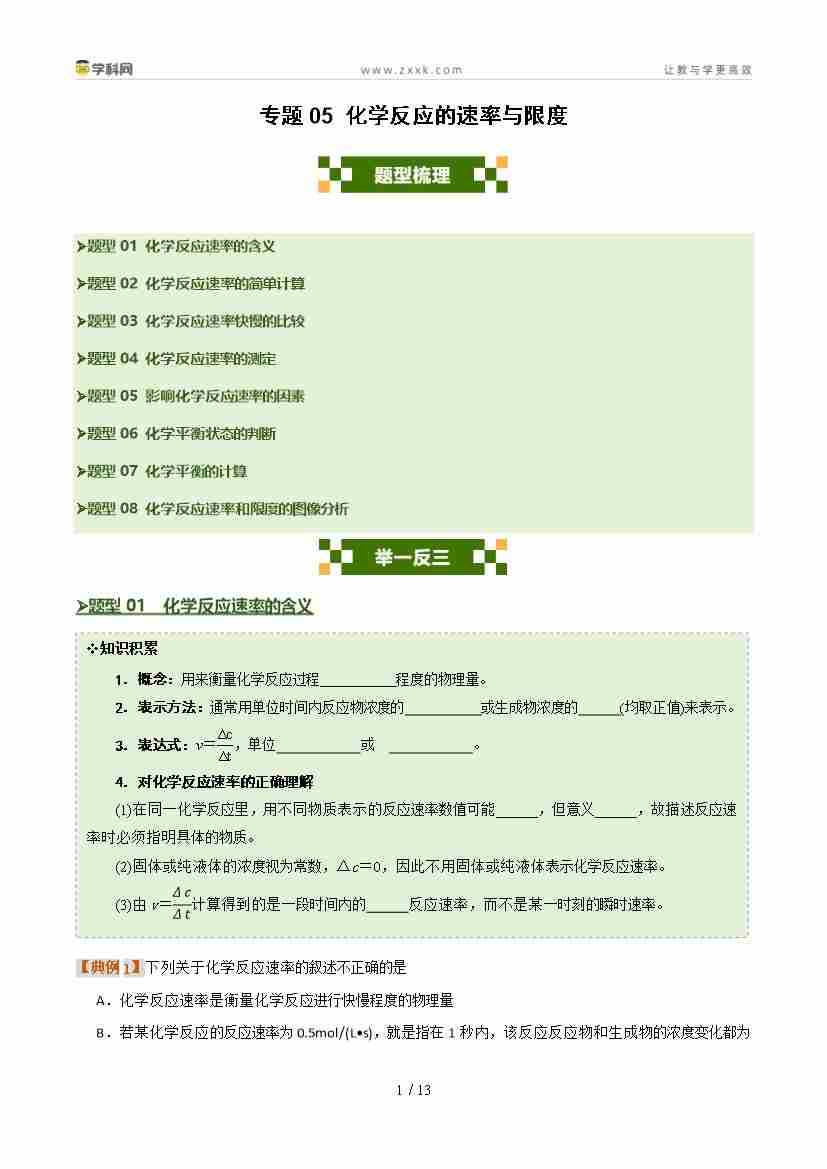 专题05 化学反应的速率与限度(八大题型)(学生版)