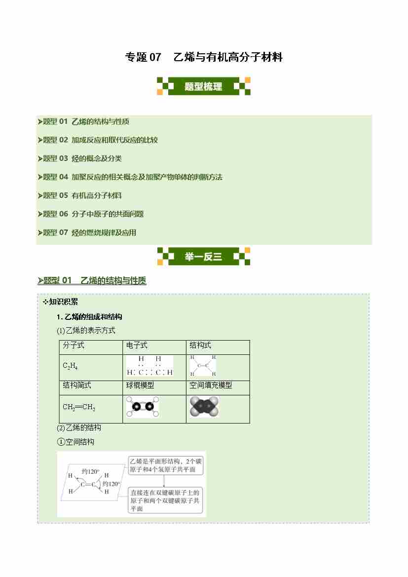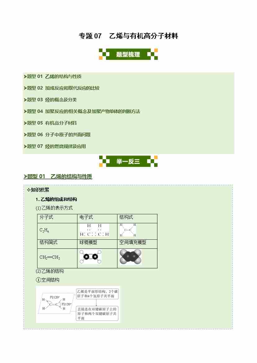 专题07 乙烯与有机高分子材料(七大题型)(学生版)