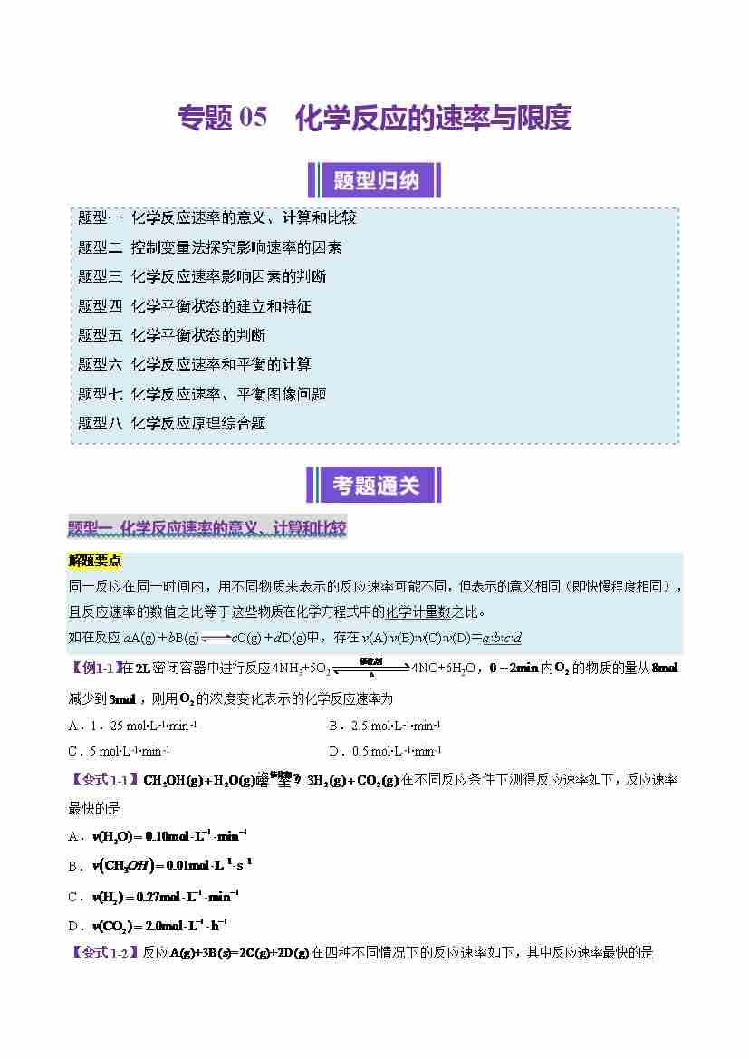 专题05 化学反应的速率与限度(考题猜想)(8大题型)(学生版)