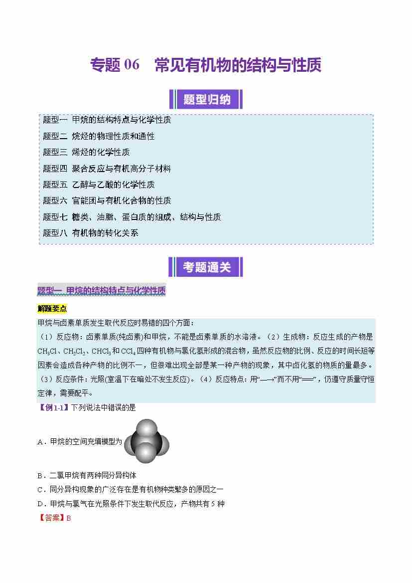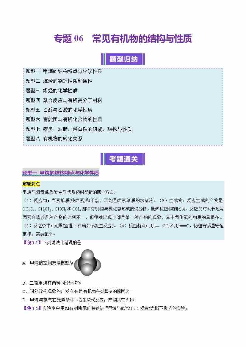 专题06 常见有机物的结构与性质(考题猜想)(8大题型)(学生版)