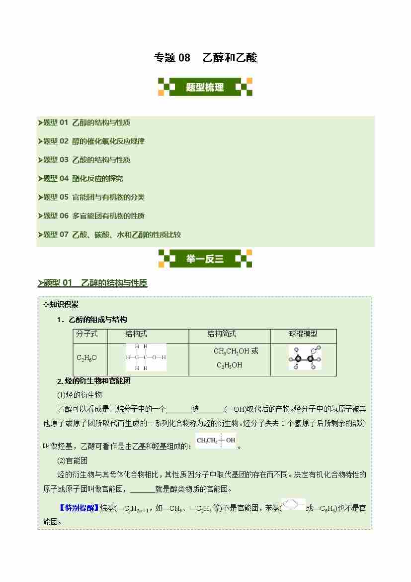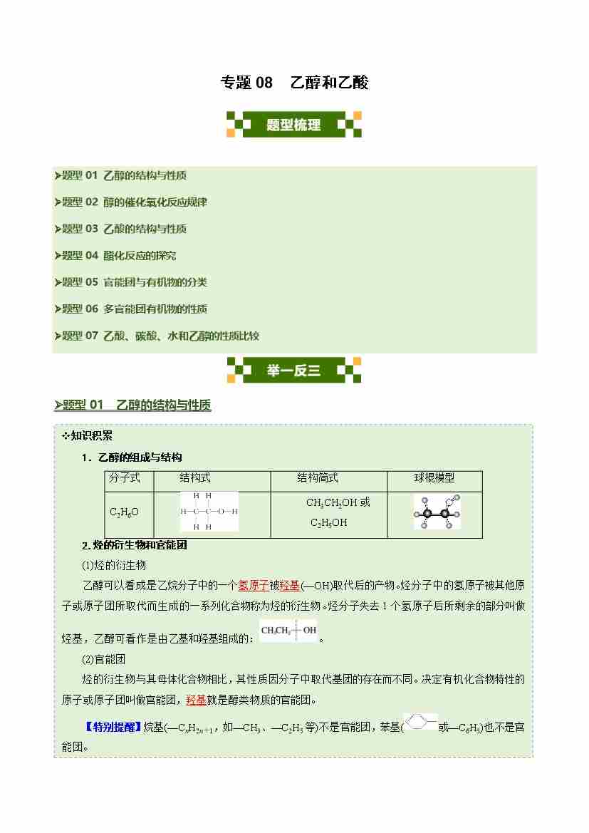 专题08 乙醇和乙酸(七大题型)(学生版)