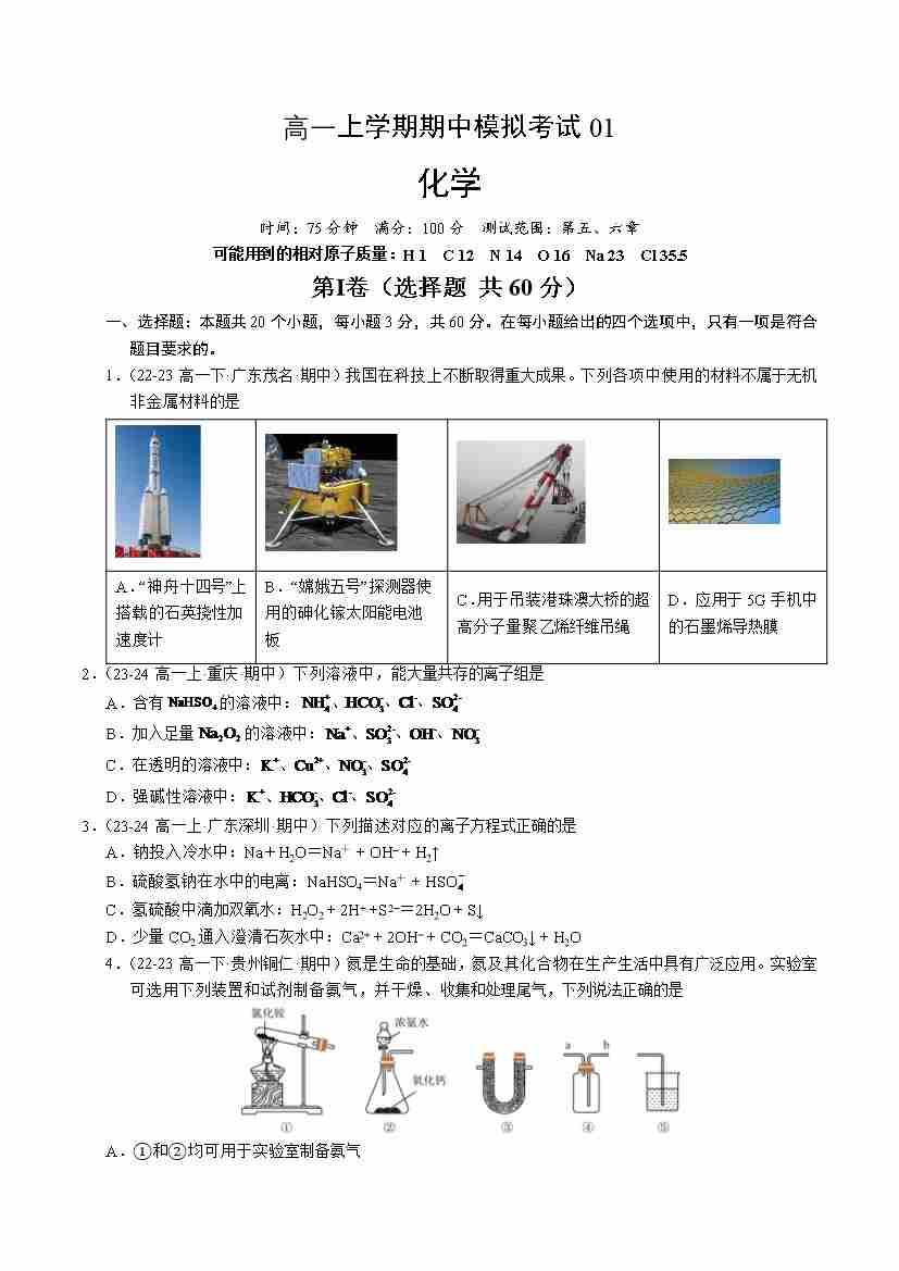 期中测试卷一【测试范围:第五、六章】(原卷版)