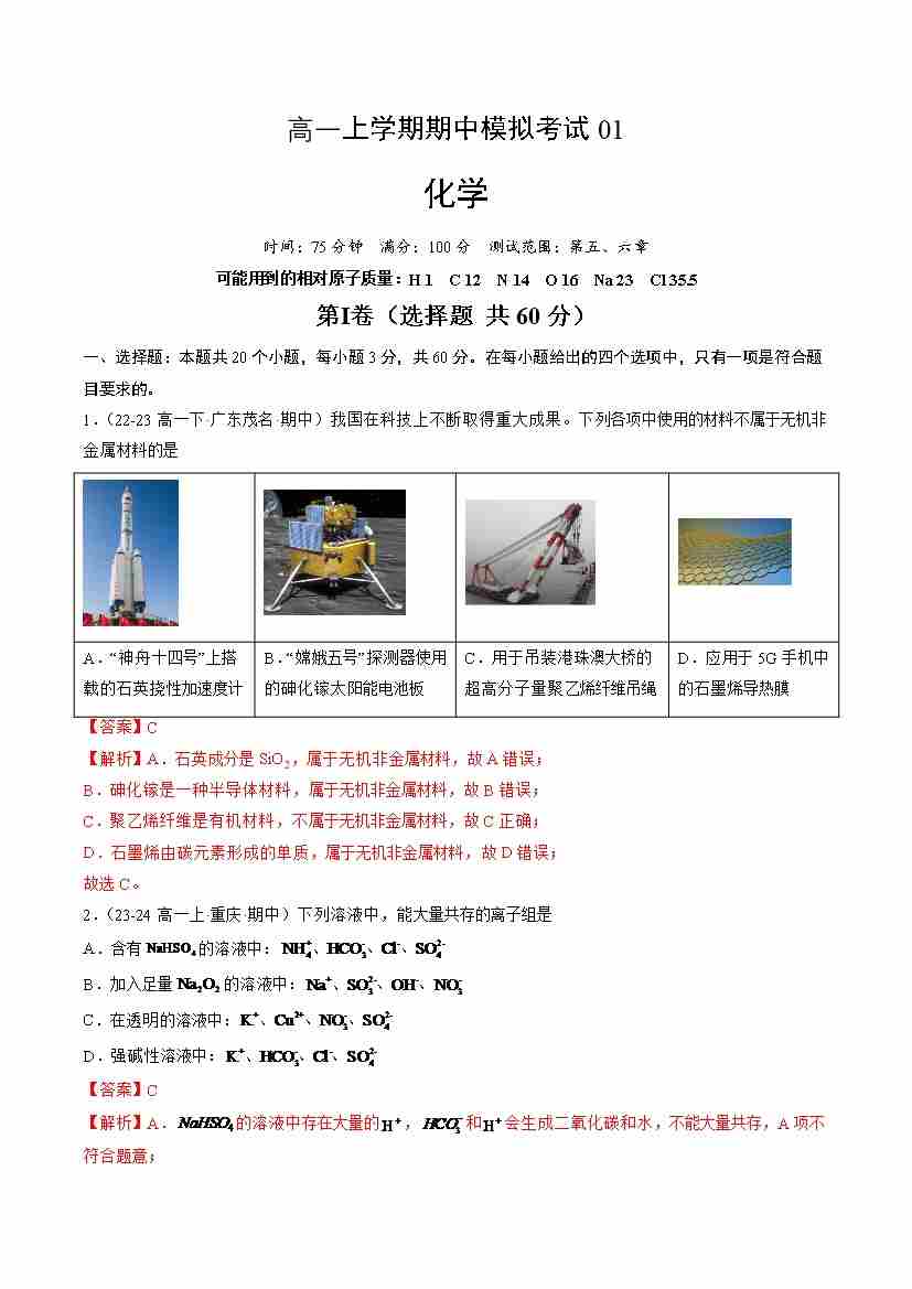 期中测试卷一【测试范围:第五、六章】(解析版)