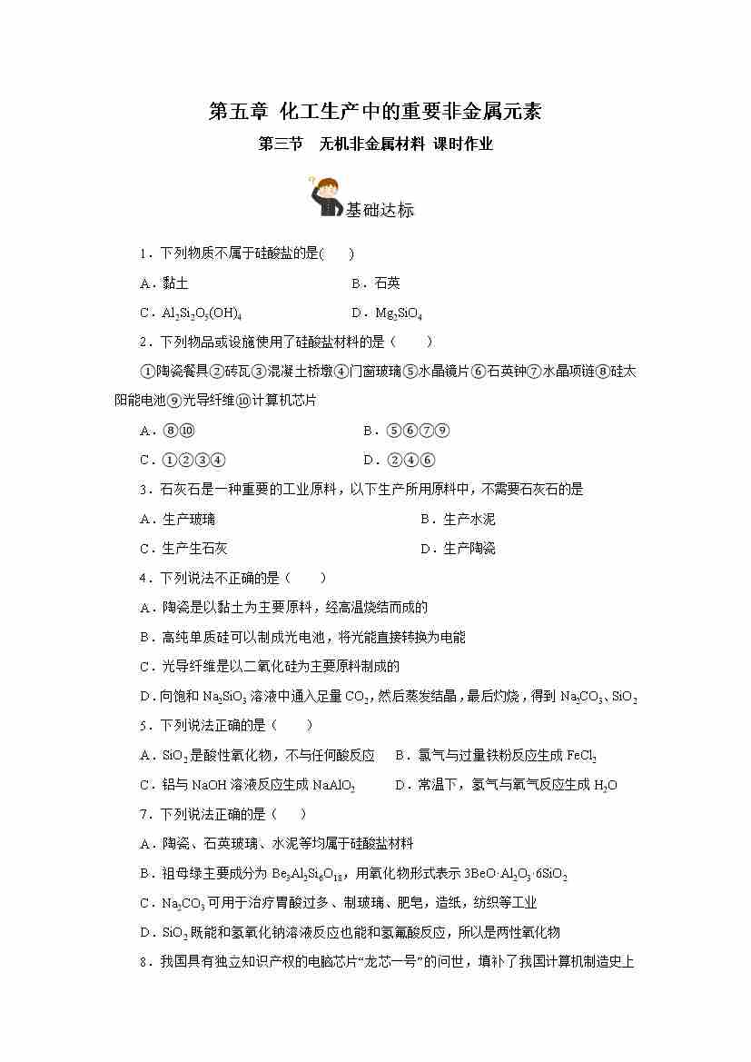 5.3 无机非金属材料(分层作业)(原卷版)