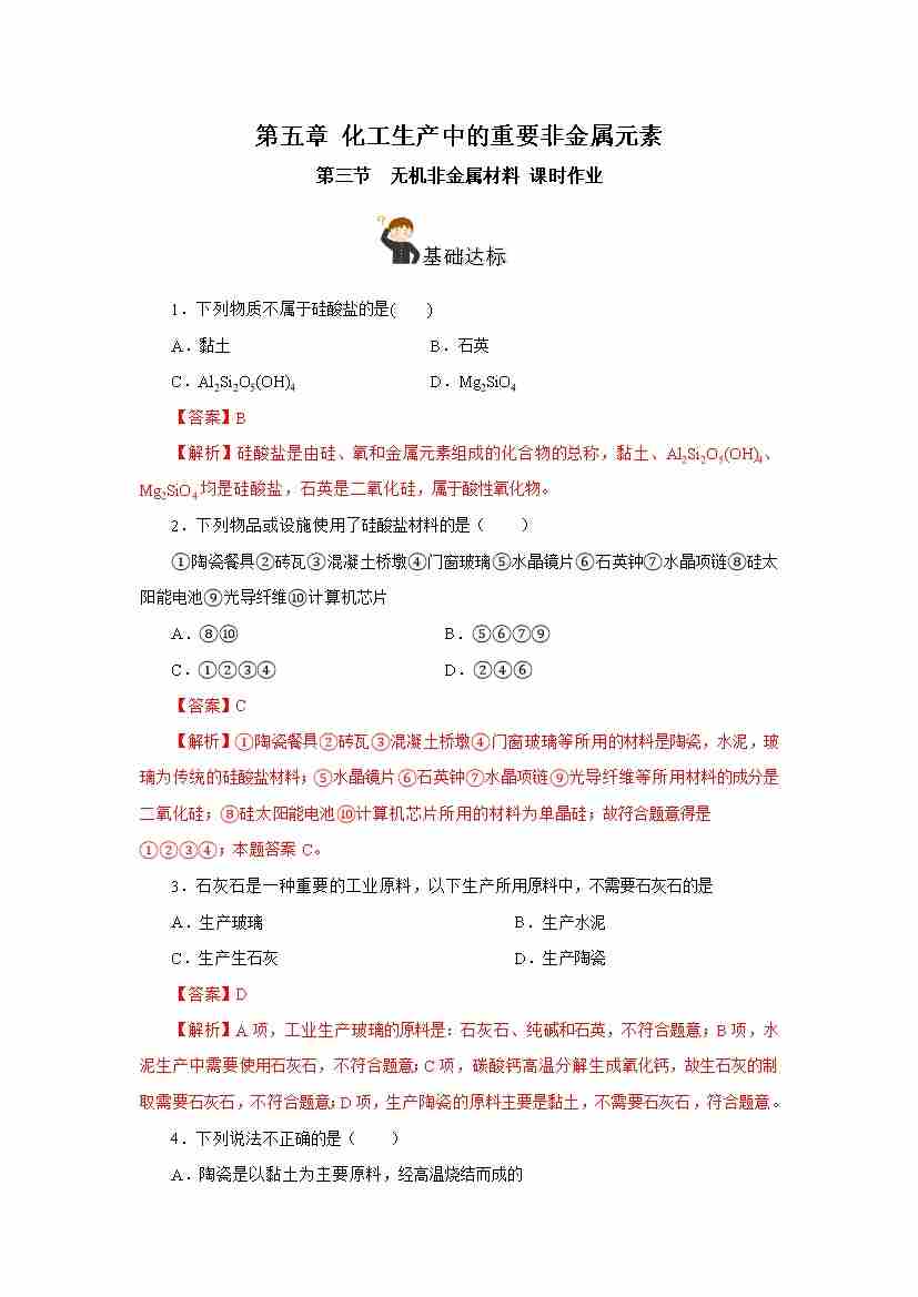 5.3 无机非金属材料(分层作业)(解析版)