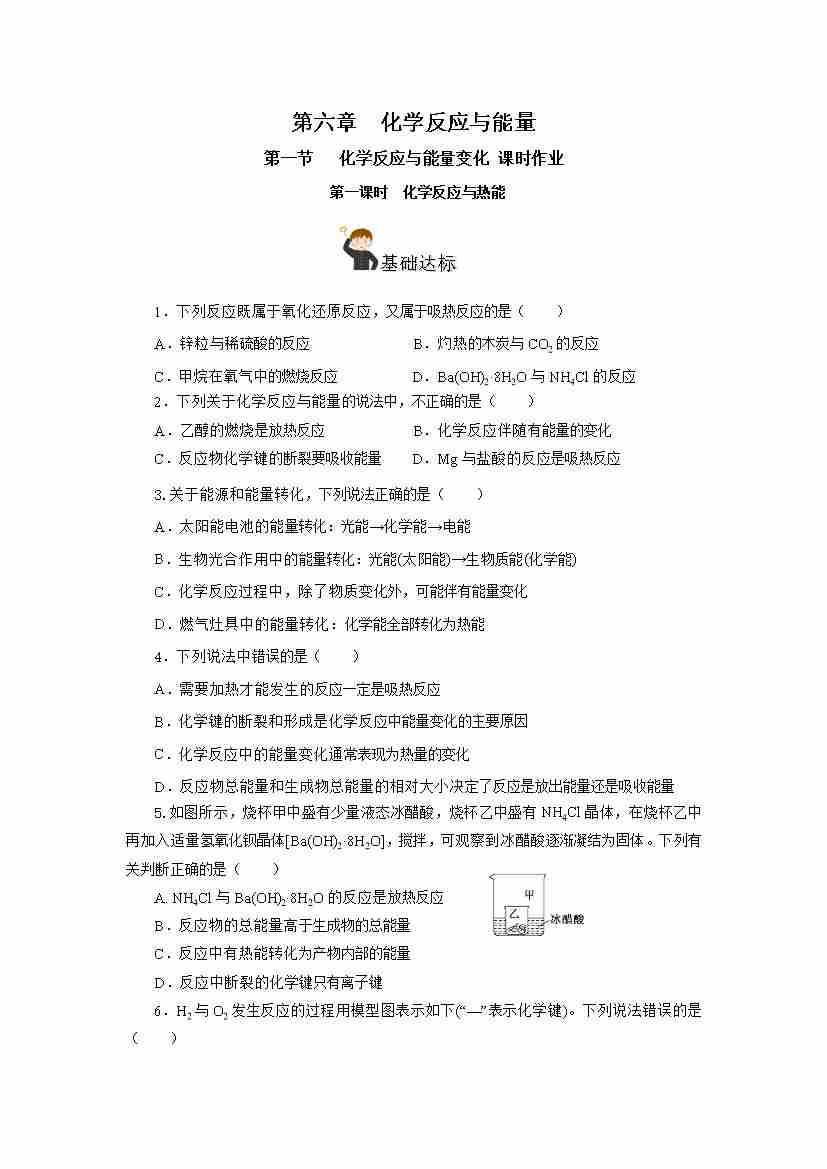 6.1.1 化学反应与热能(分层作业)(原卷版)