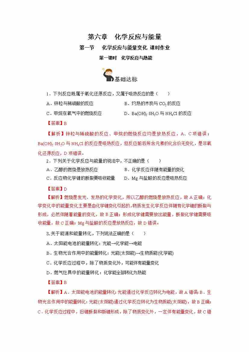 6.1.1 化学反应与热能(分层作业)(解析版)