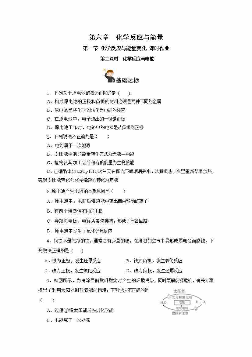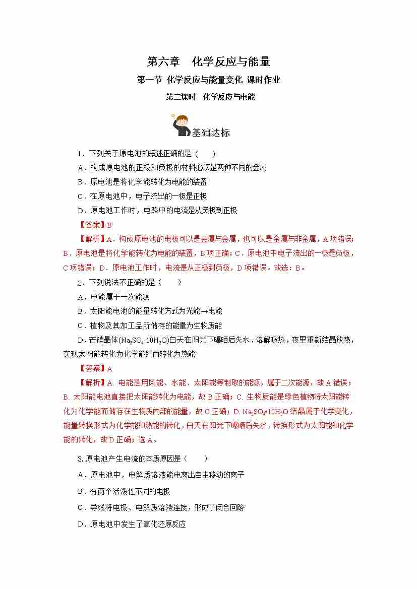 6.1.2 化学反应与电能(分层作业)(解析版)