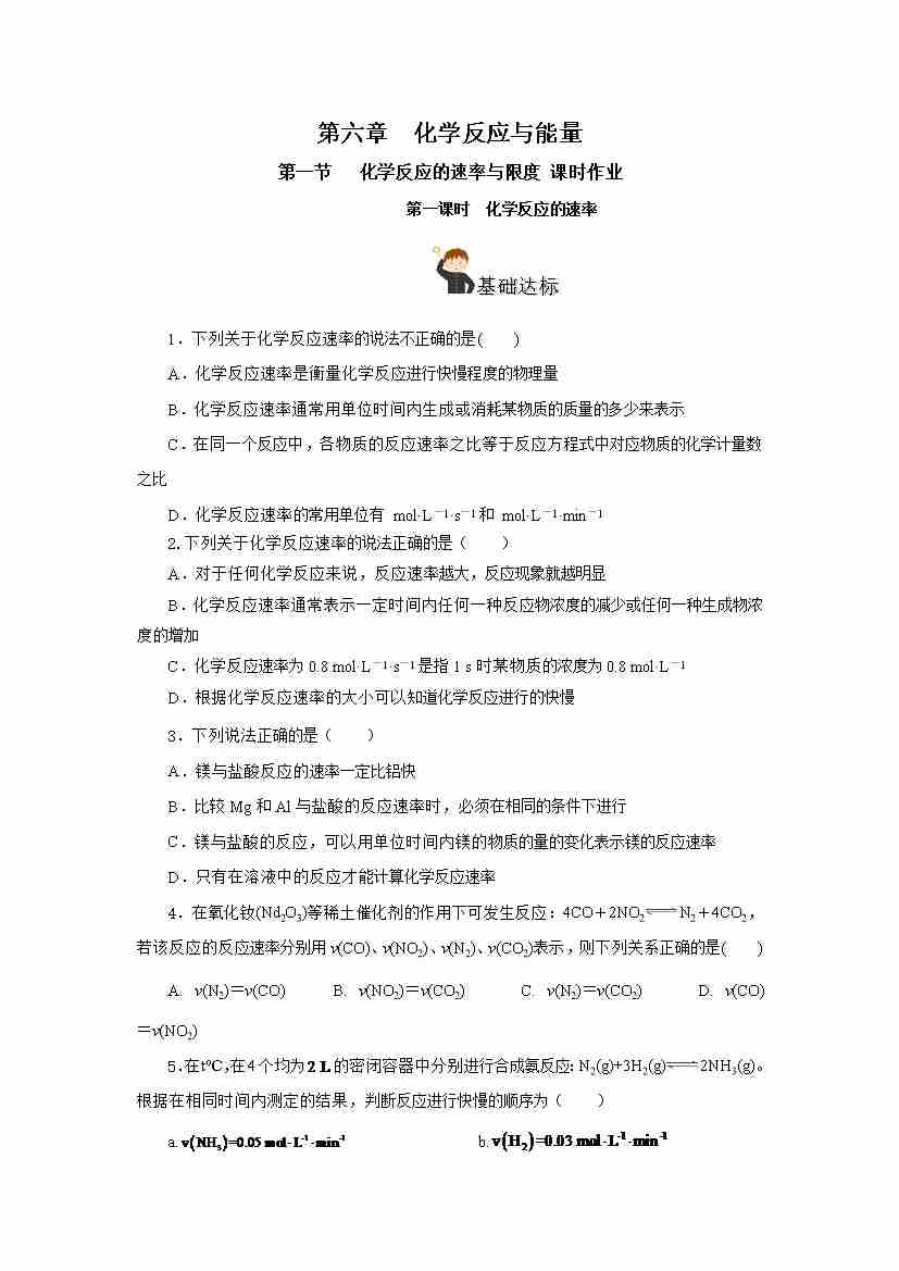 6.2.1 化学反应的速率(分层作业) (原卷版)