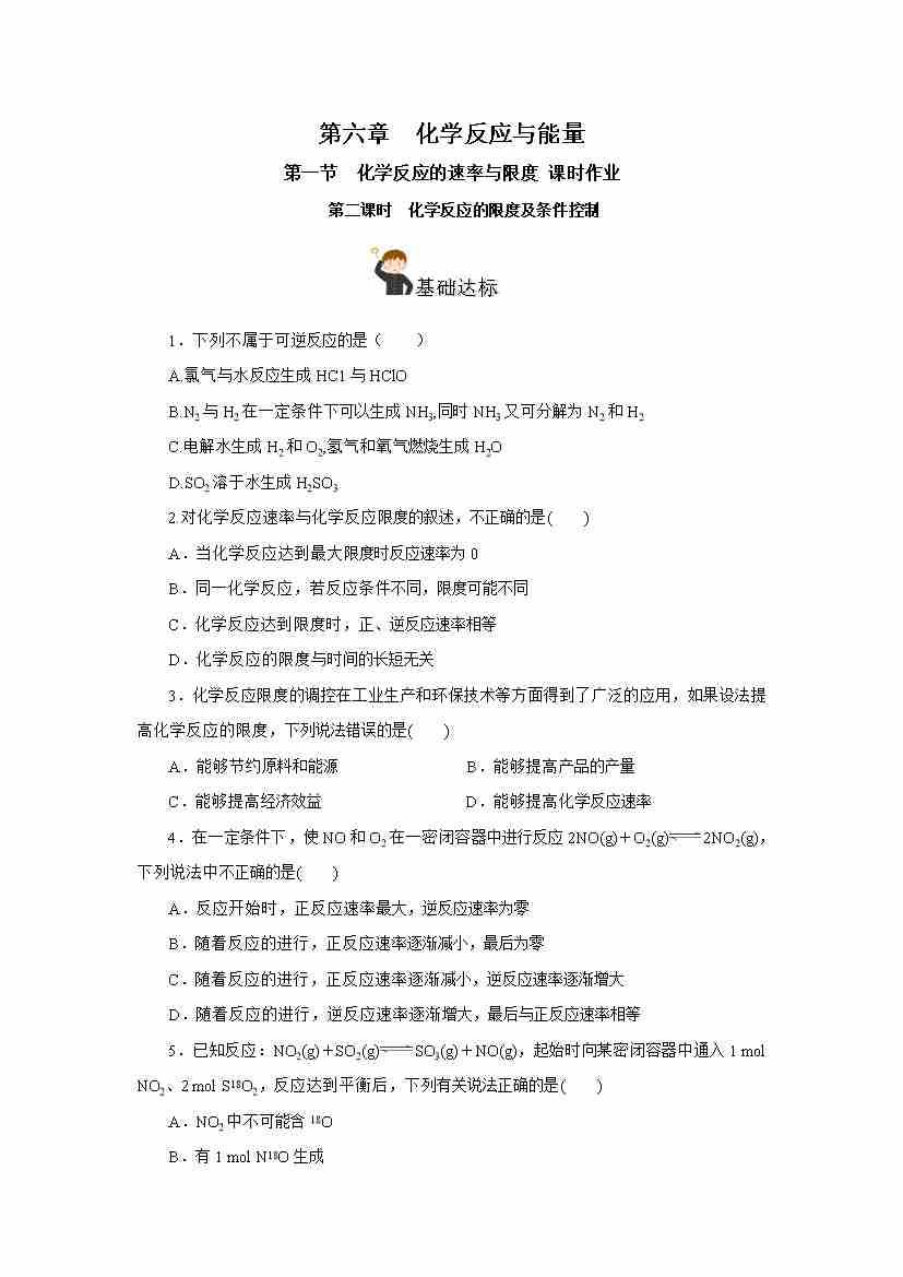6.2.2 化学反应的限度及条件控制(分层作业)(原卷版)