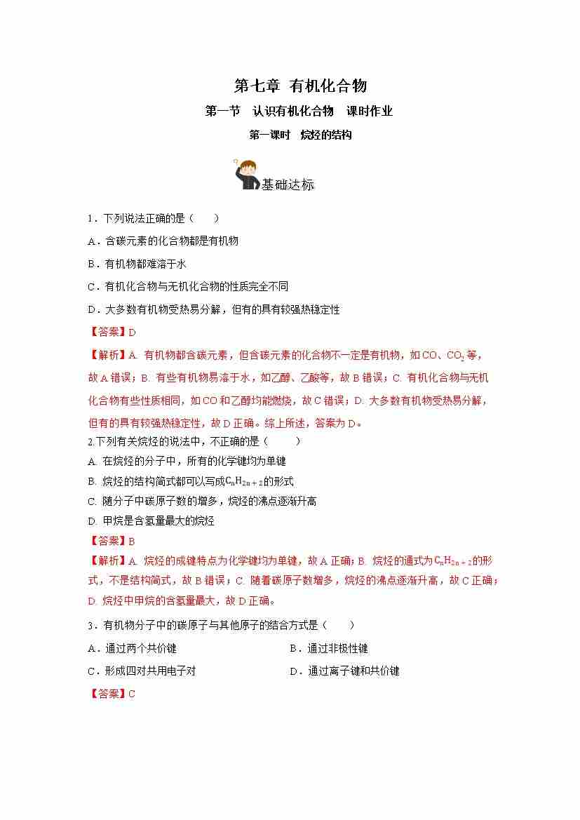 7.1.1 烷烃的结构(分层作业)(解析版)