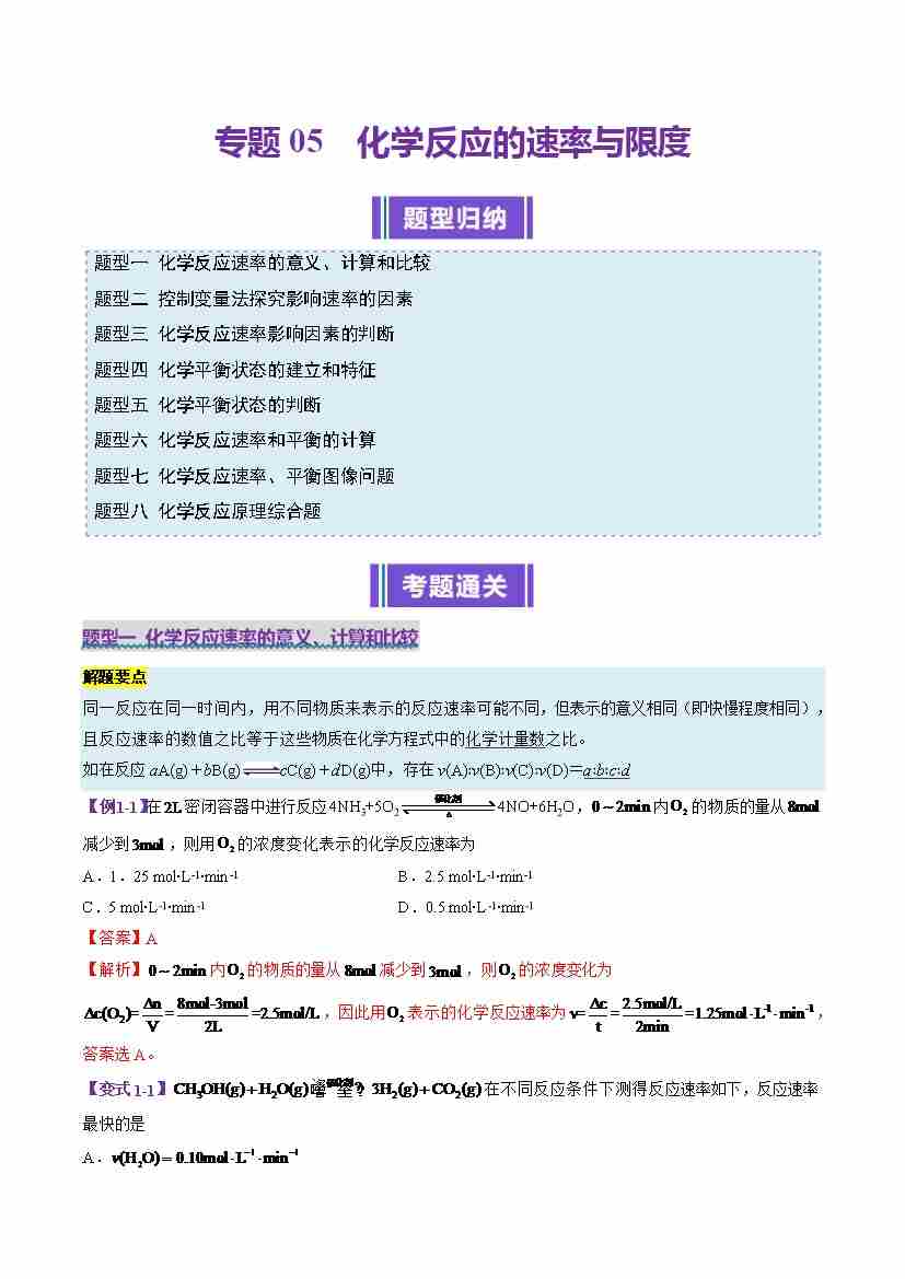 专题05 化学反应的速率与限度(考题猜想)(8大题型)(教师版)
