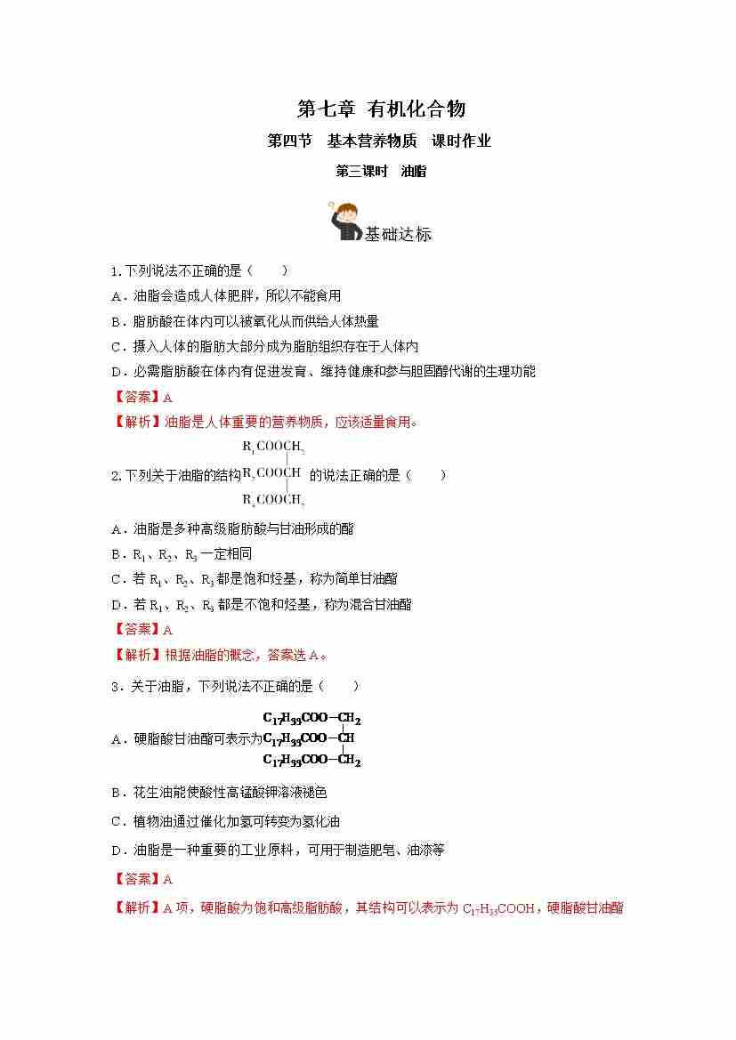 7.4.3 油脂(分层作业)(解析版)