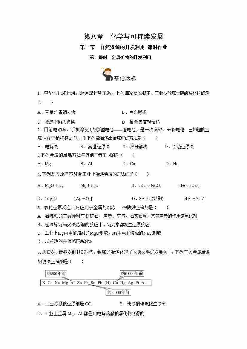 8.1.1 金属矿物的开发利用(分层作业)(原卷版)