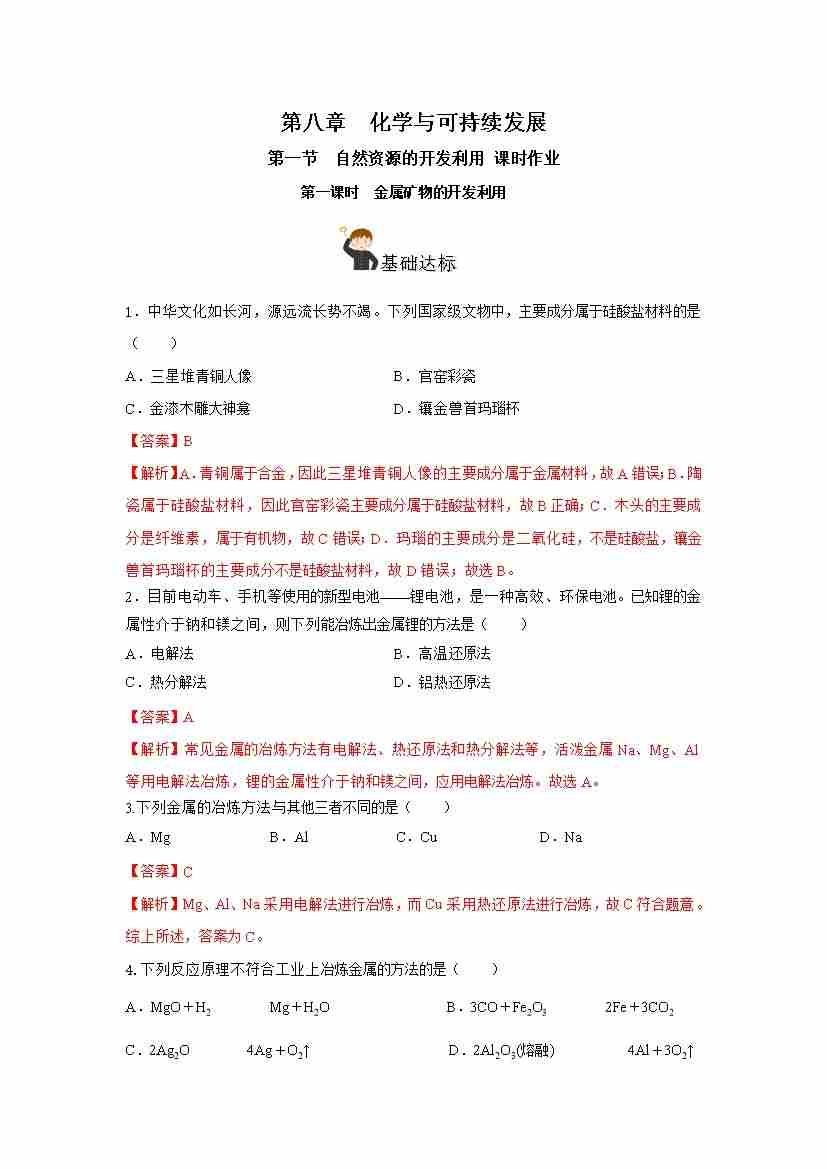 8.1.1 金属矿物的开发利用(分层作业)(解析版)