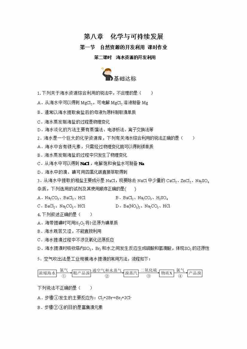 8.1.2 海水资源的开发利用(分层作业)(解析版)