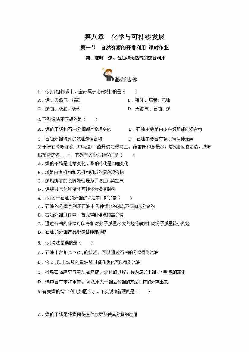 8.1.3 煤、石油和天然气的综合利用(分层作业)(原卷版)
