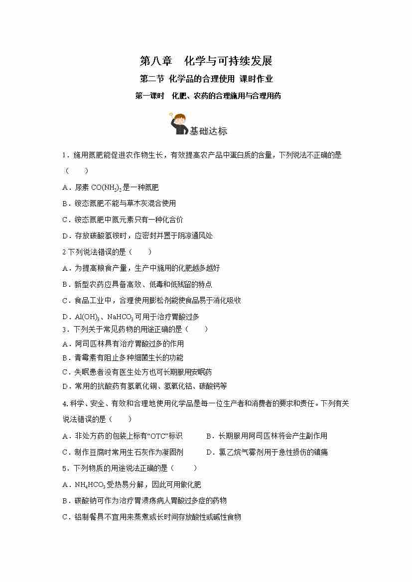 8.2.1 化肥、农药的合理施用与合理用药(分层作业)(原卷版)