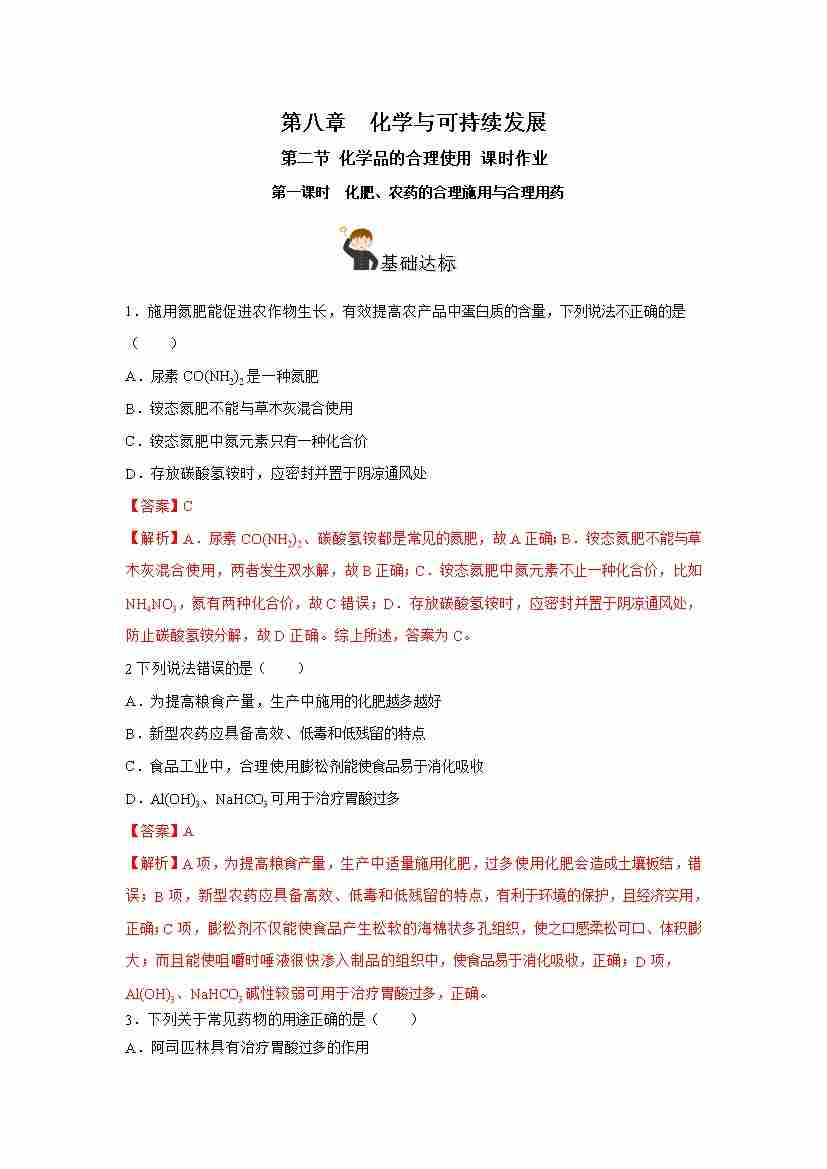8.2.1 化肥、农药的合理施用与合理用药(分层作业)(解析版)