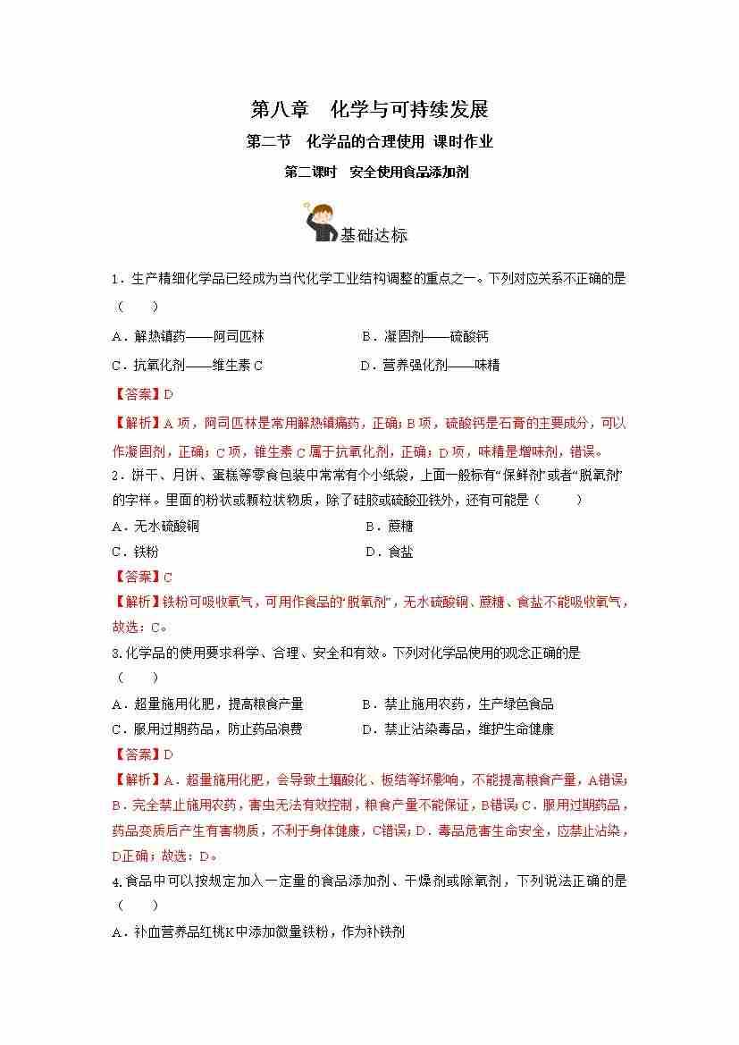 8.2.2 安全使用食品添加剂(分层作业)(解析版)