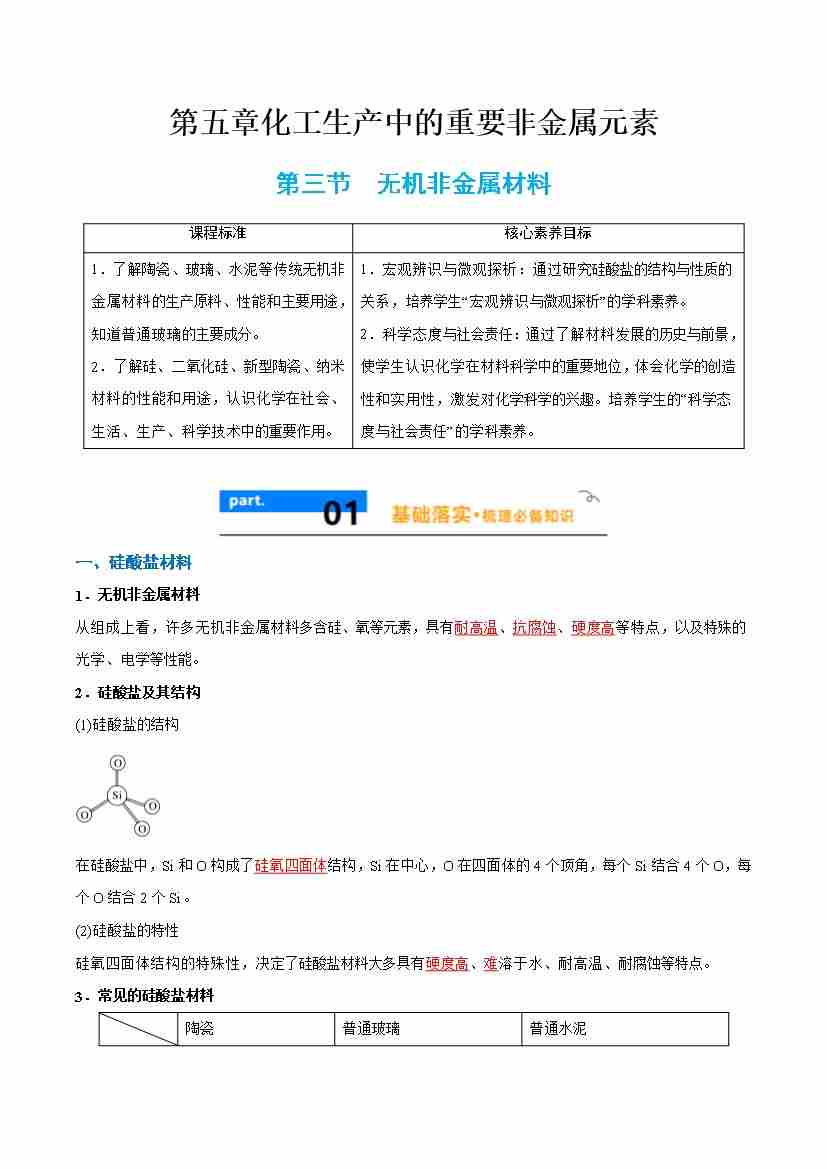 5.3 无机非金属材料 -(人教版必修第二册)(教师版)