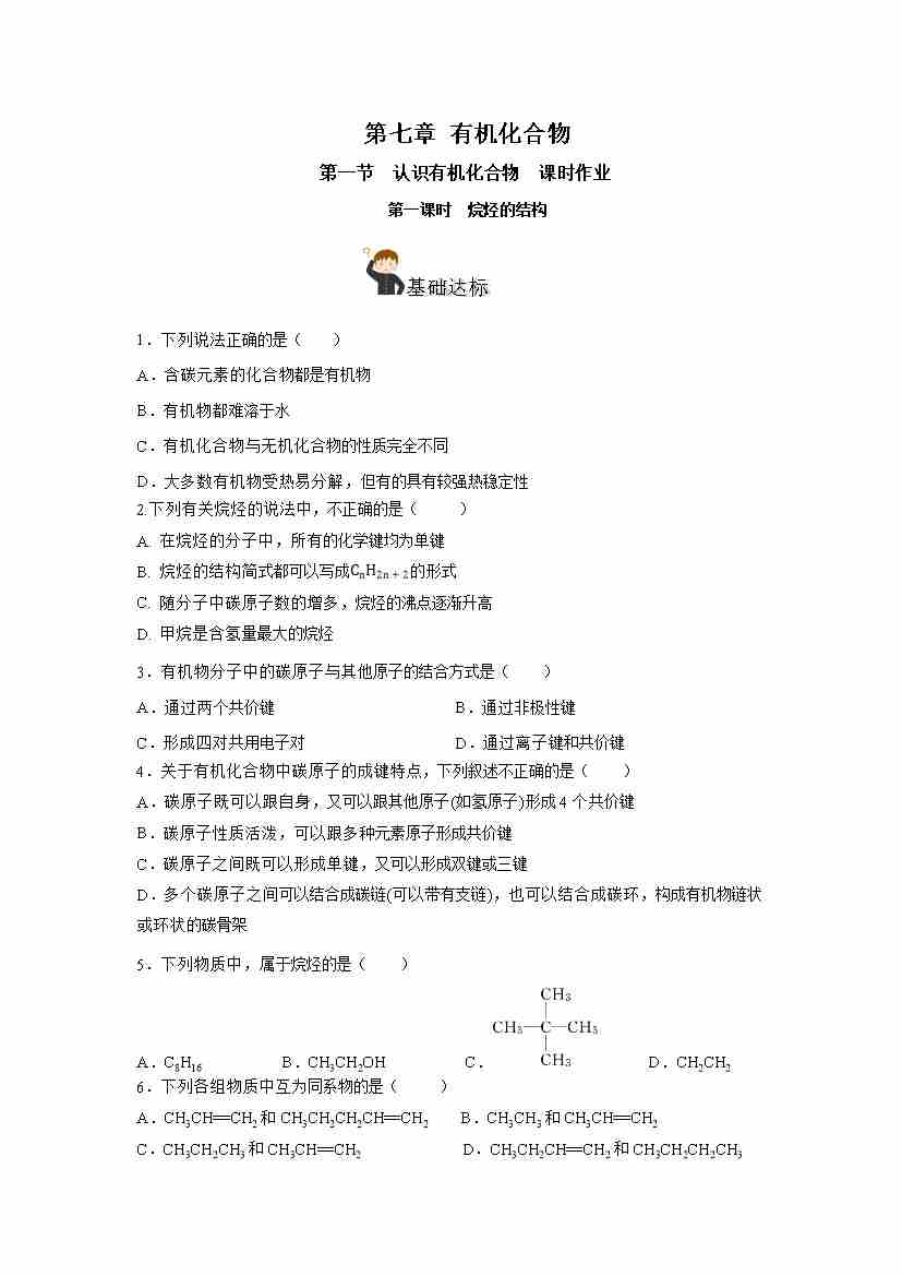 7.1.1 烷烃的结构(分层作业)(原卷版)