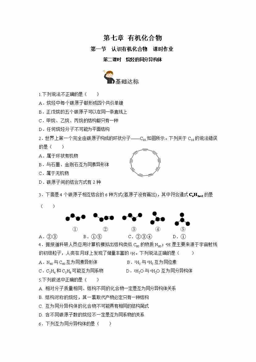 7.1.2 烷烃的同分异构体(分层作业)(原卷版)