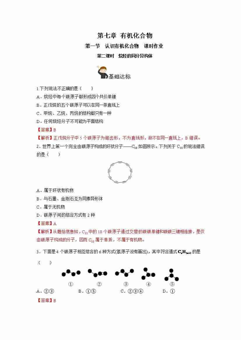7.1.2 烷烃的同分异构体(分层作业)(解析版)