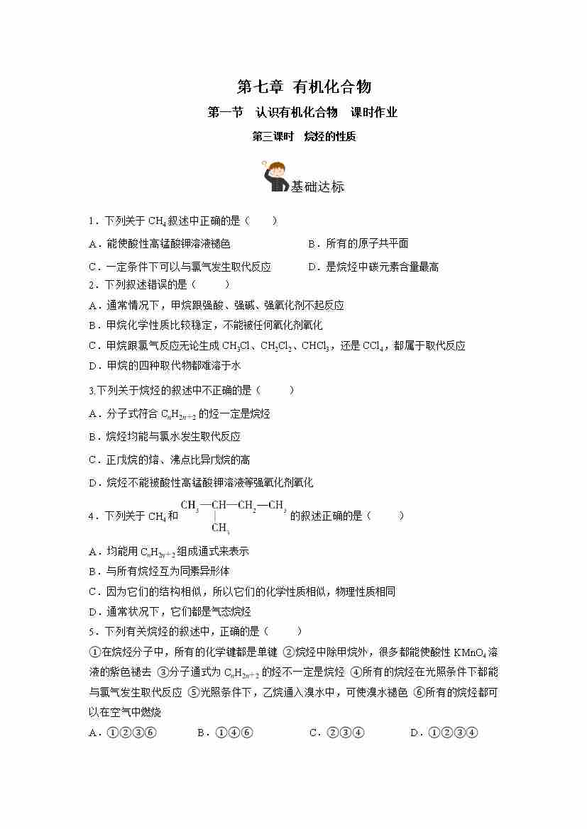 7.1.3 烷烃的性质(分层作业)(原卷版)
