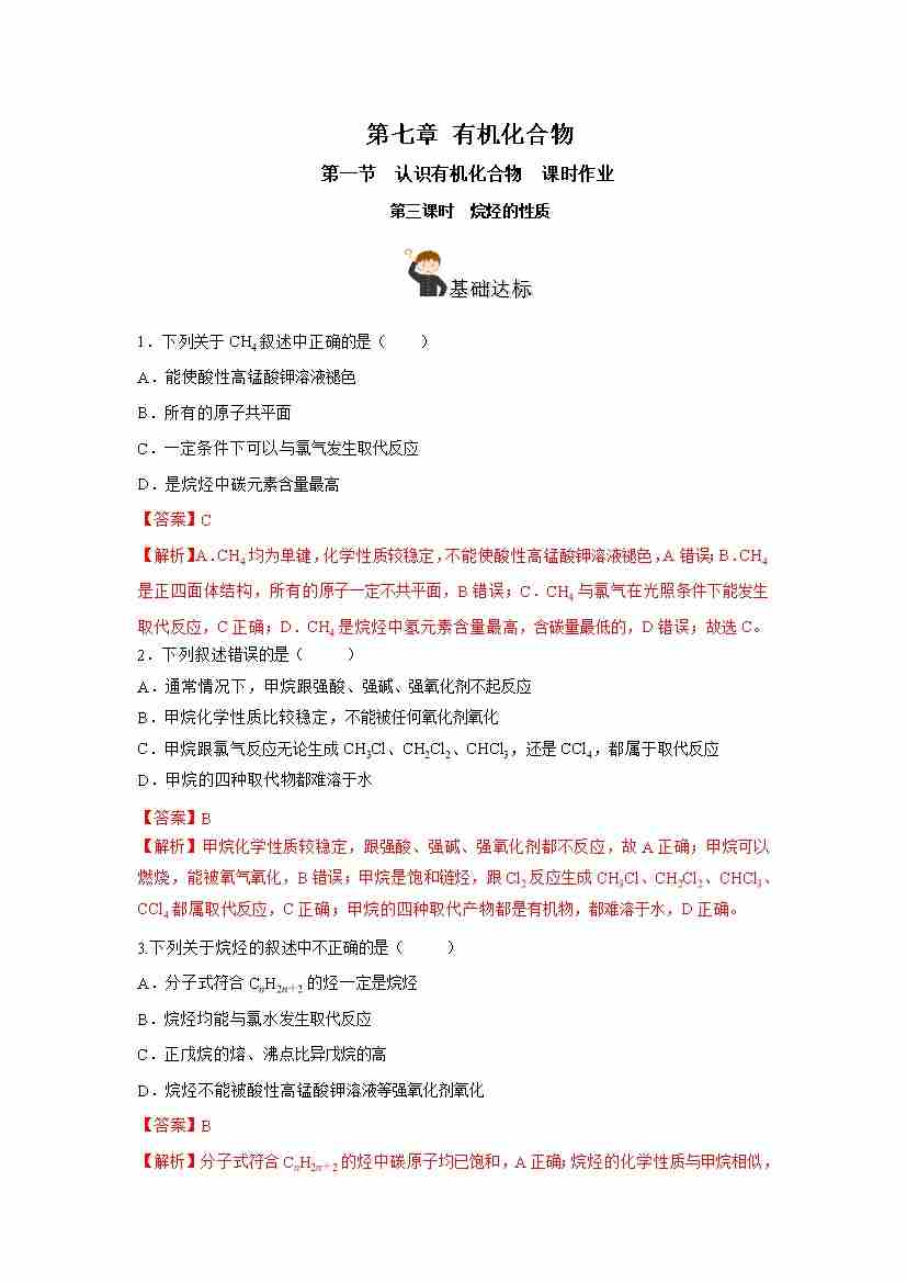 7.1.3 烷烃的性质(分层作业)(解析版)