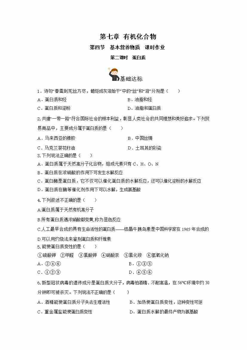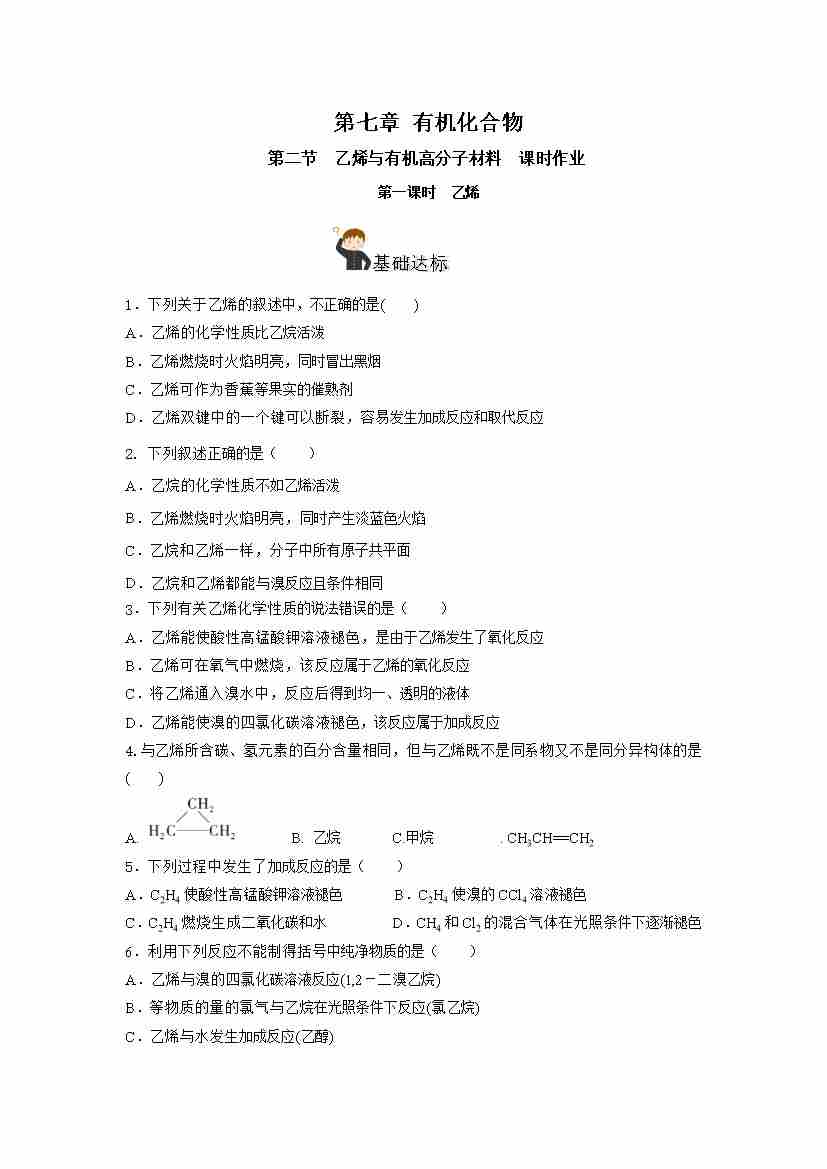 7.2.2 烃 有机高分子材料(分层作业)(原卷版)