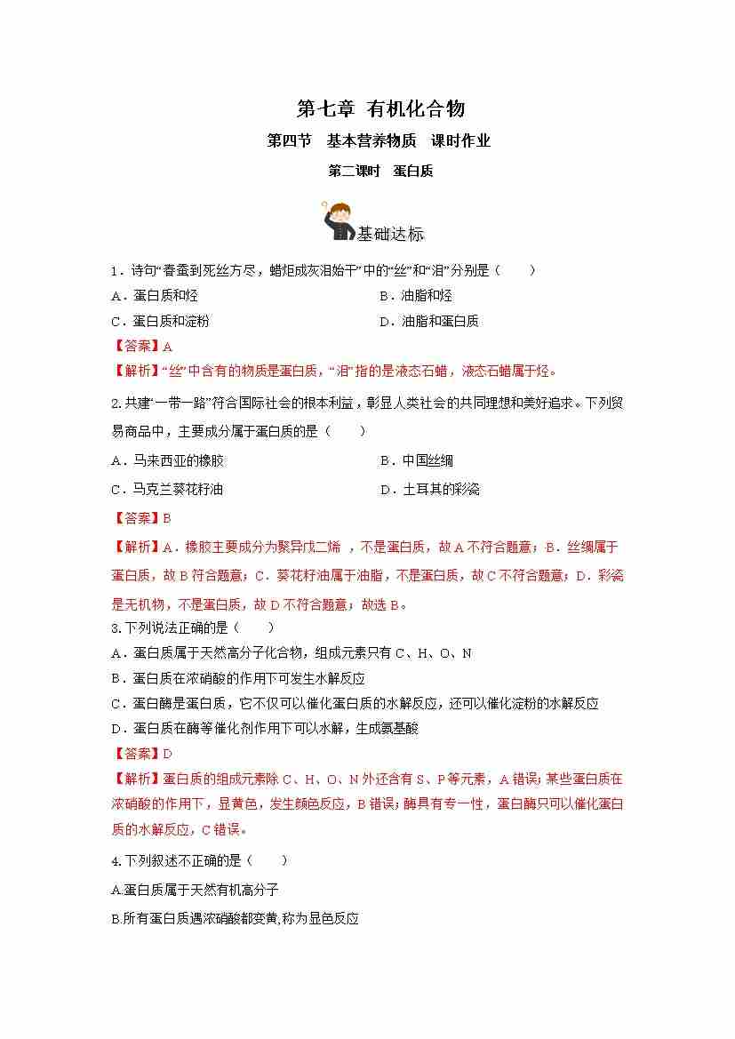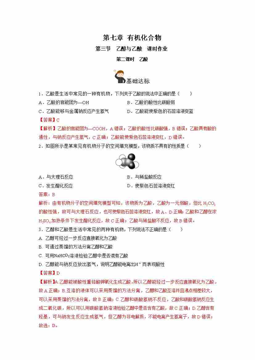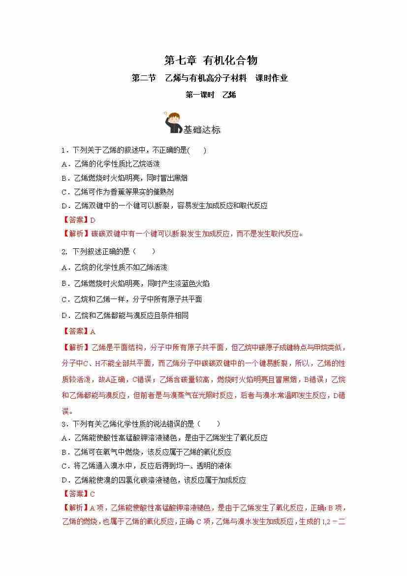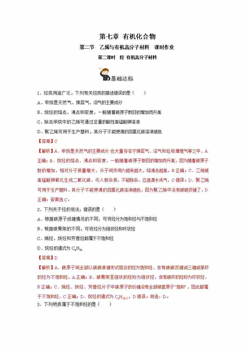 7.2.2 烃 有机高分子材料(分层作业)(解析版)