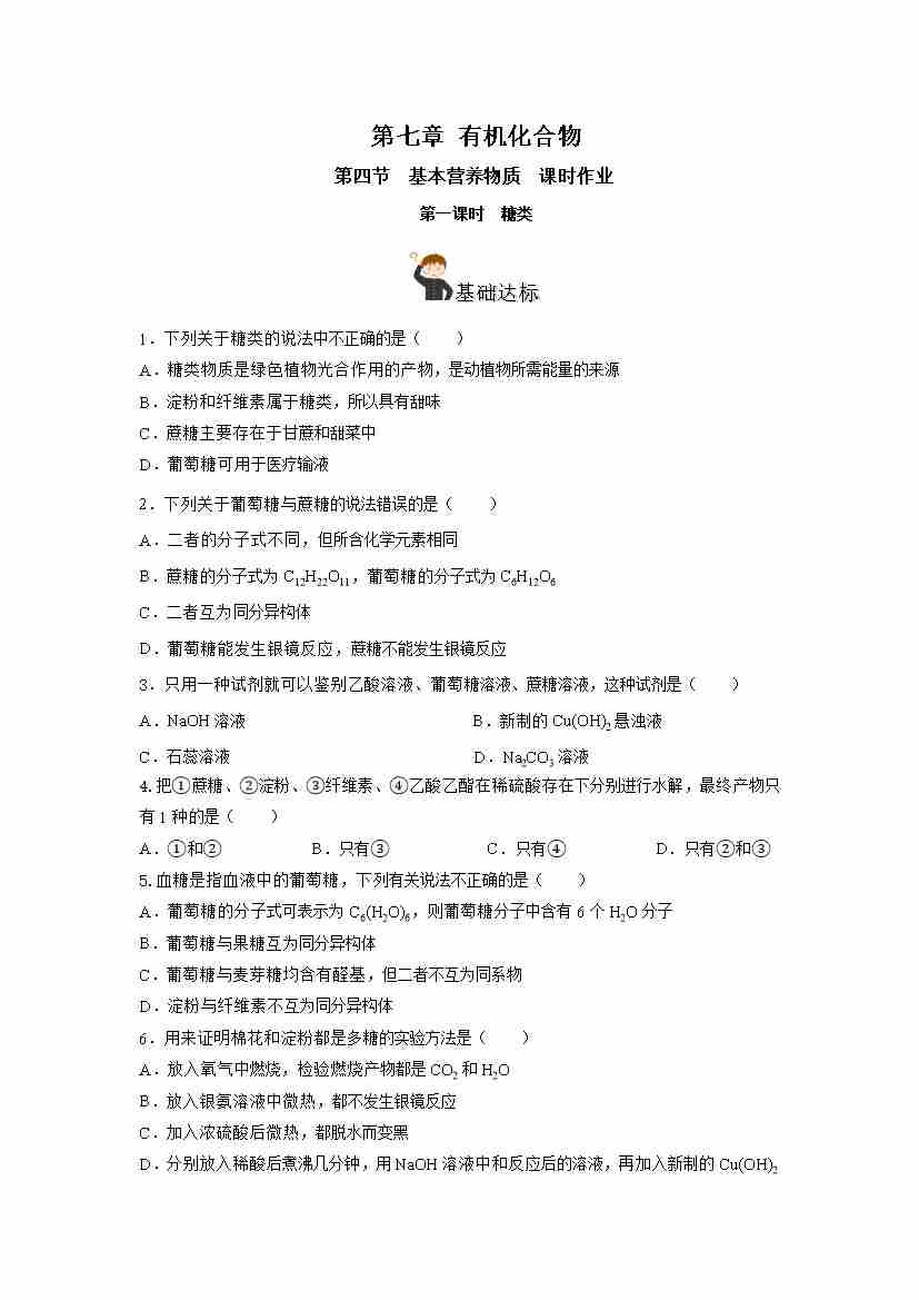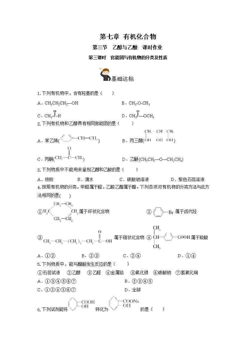 7.3.3 官能团与有机物的分类及性质(分层作业)(原卷版)