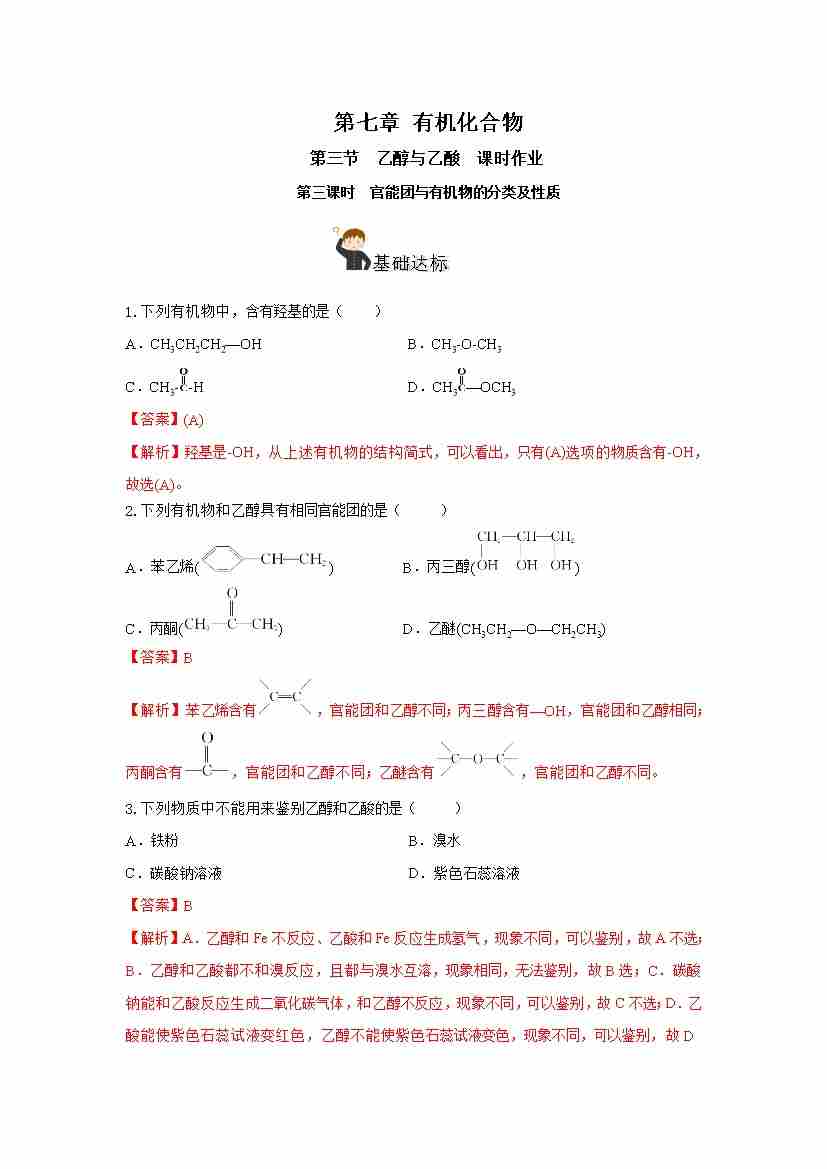 7.3.3 官能团与有机物的分类及性质(分层作业)(解析版)
