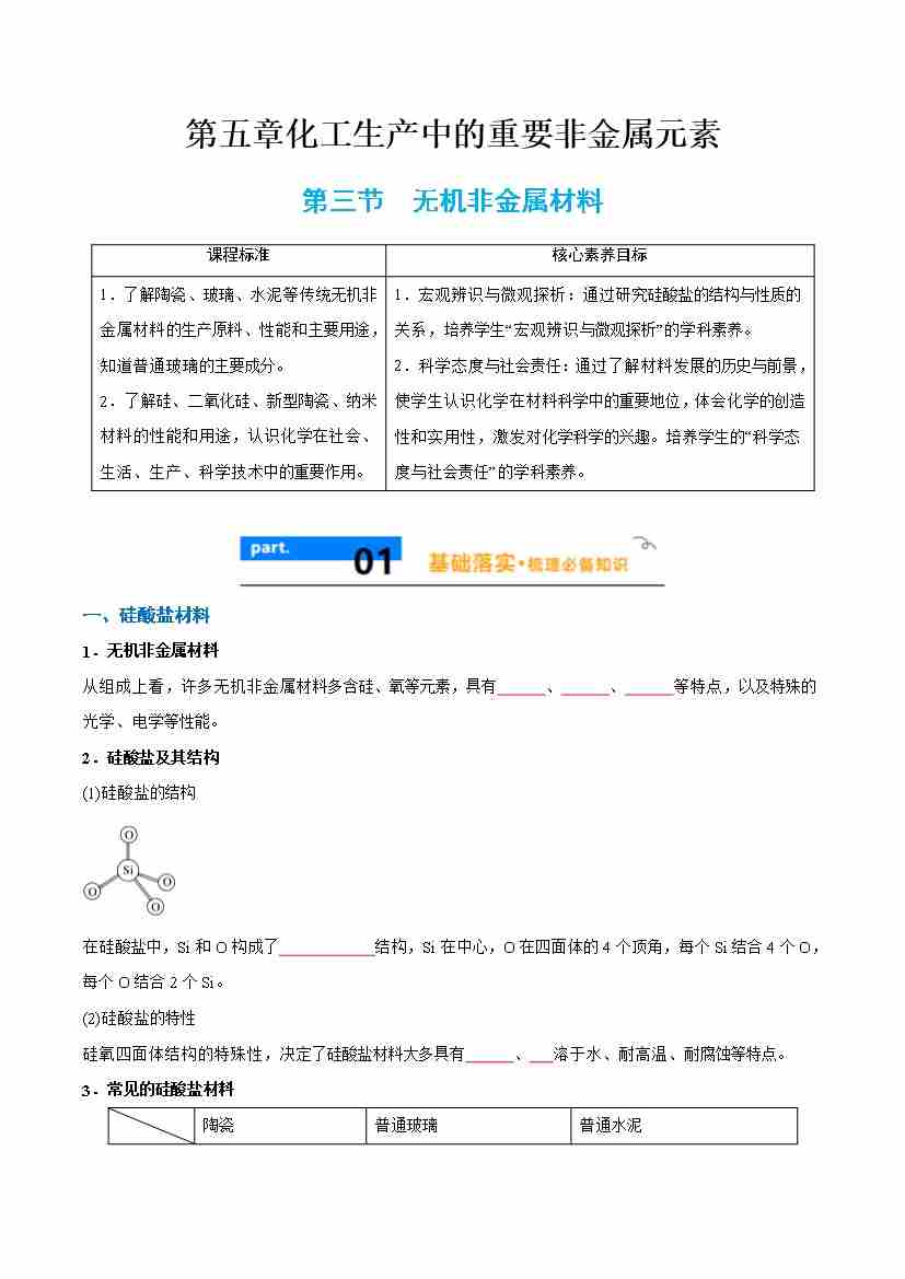 5.3 无机非金属材料 -(人教版必修第二册)(学生版)