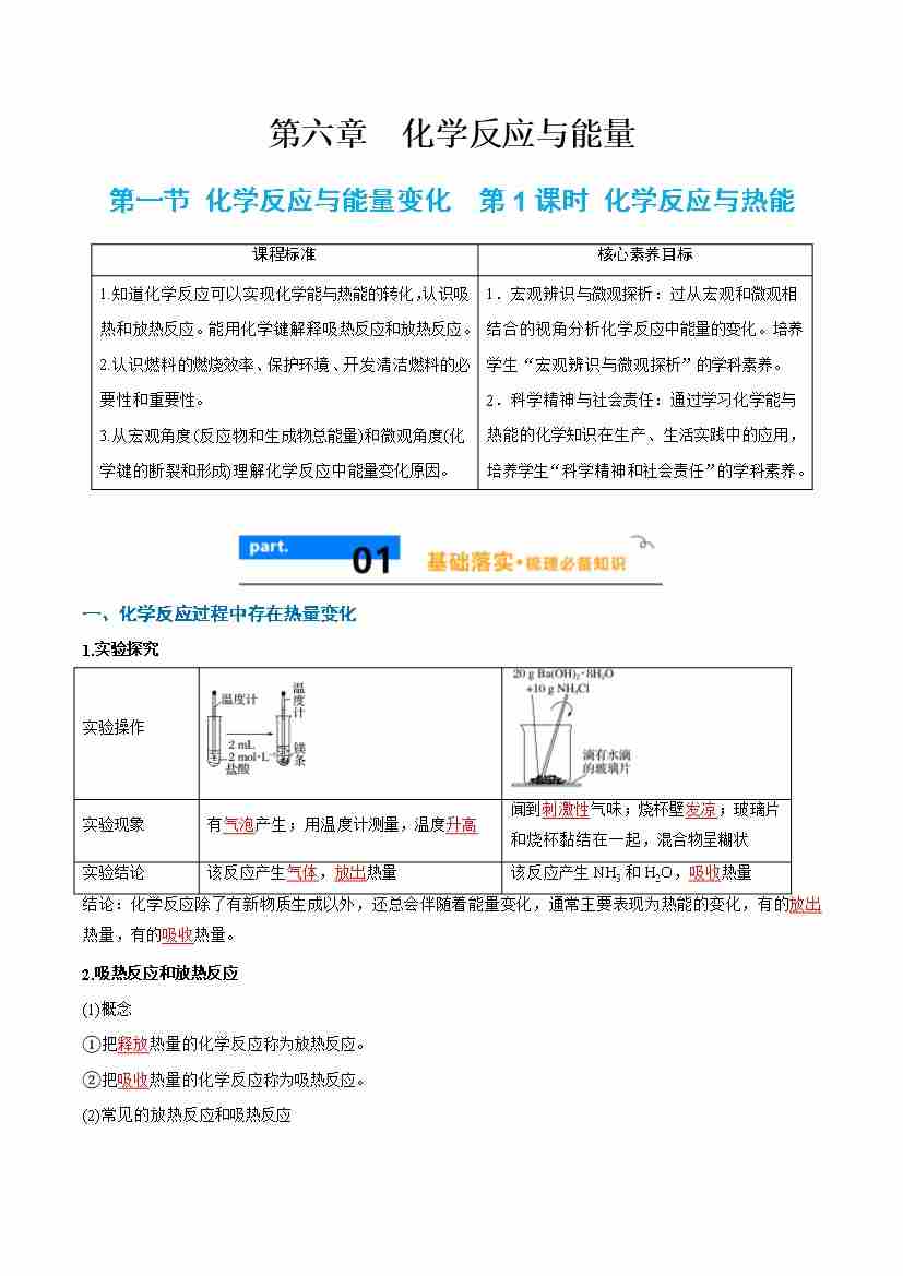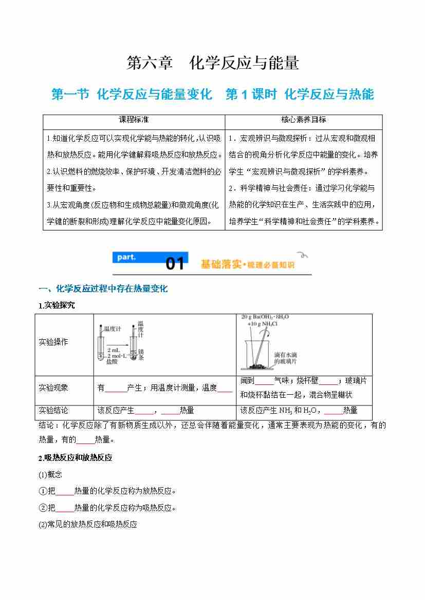 6.1.1 化学反应与热能 -(人教版必修第二册)(学生版)