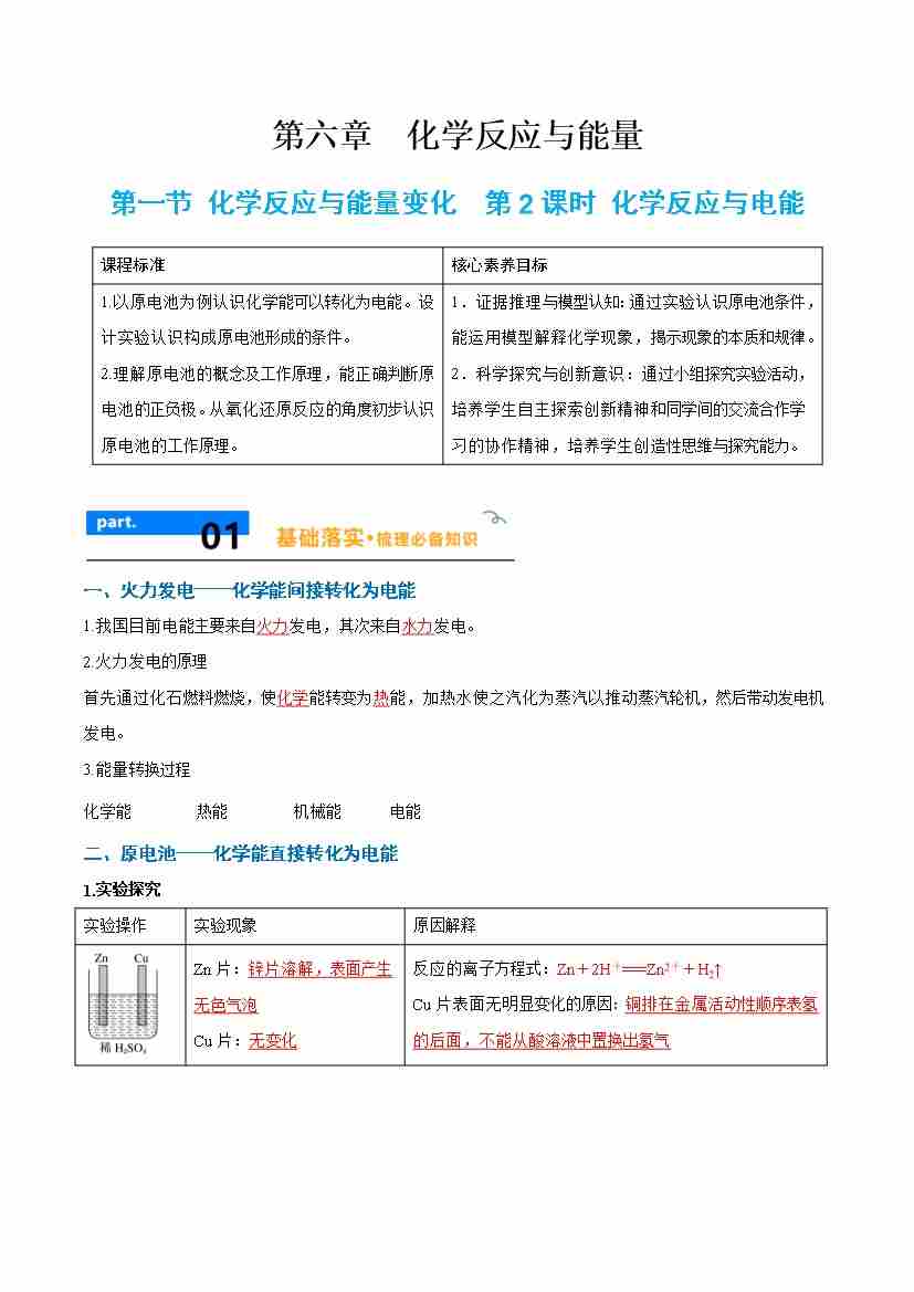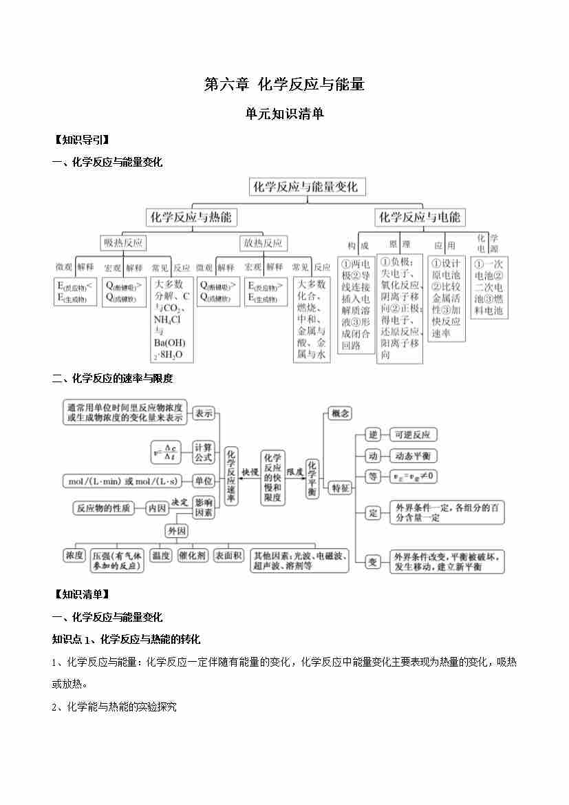 第六章 化学反应与能量(单元知识清单)-(人教版2019必修第二册)
