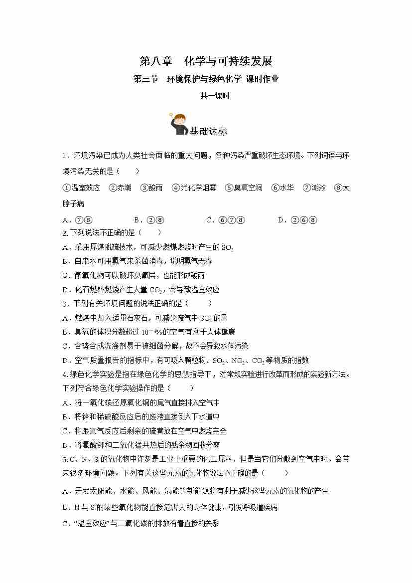 8.3 环境保护与绿色化学(分层作业)(原卷版)