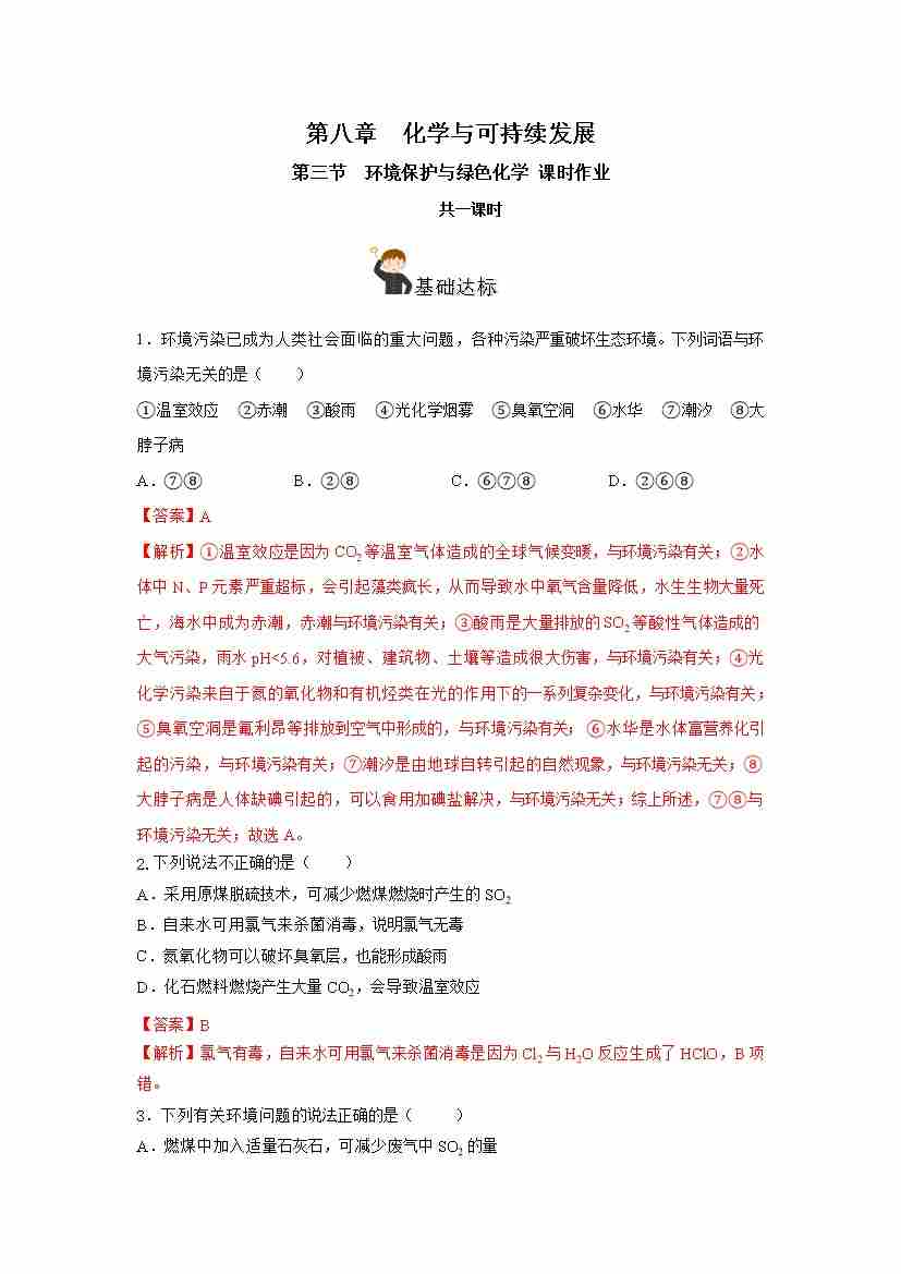 8.3 环境保护与绿色化学(分层作业)(解析版)