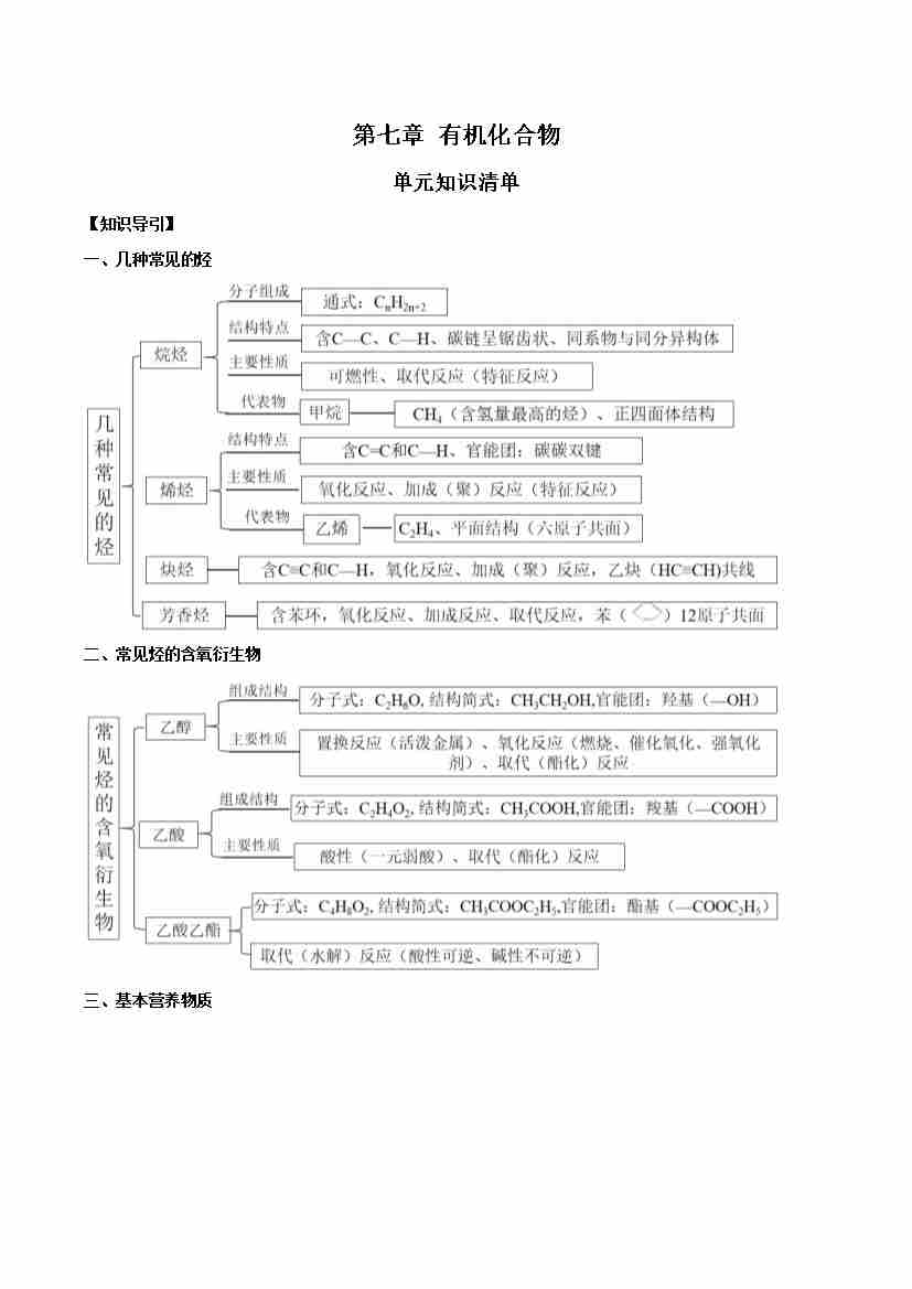 第七章 有机化合物(单元知识清单)-(人教版2019必修第二册)