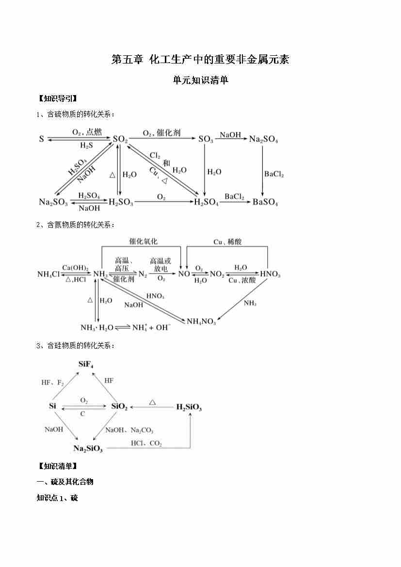 第五章 化工生产中的重要非金属元素(单元知识清单)-(人教版2019必修第二册)
