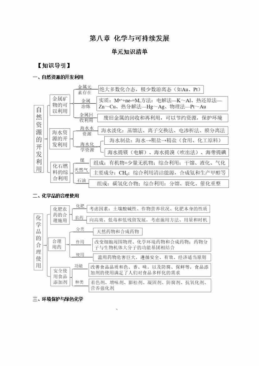 第八章 化学与可持续发展(单元知识清单)-(人教版2019必修第二册)