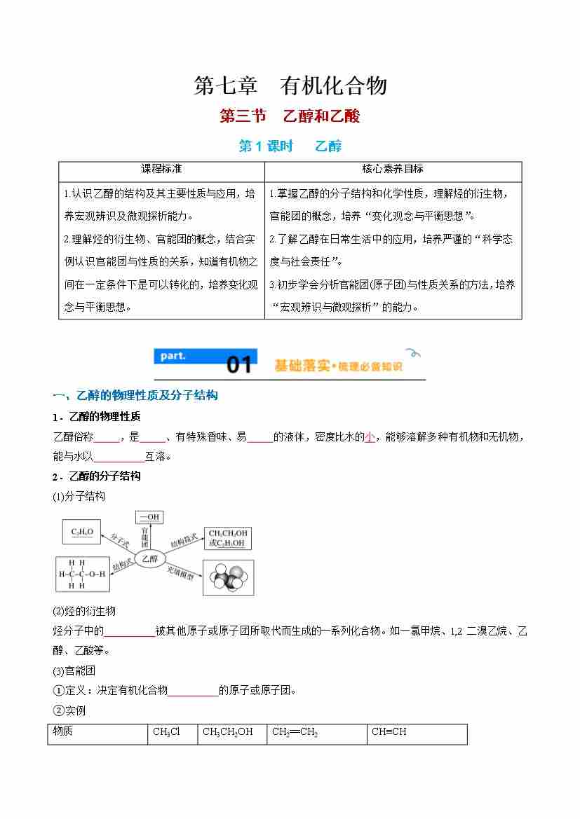 7.3.1 乙醇- (人教版必修第二册)(学生版)