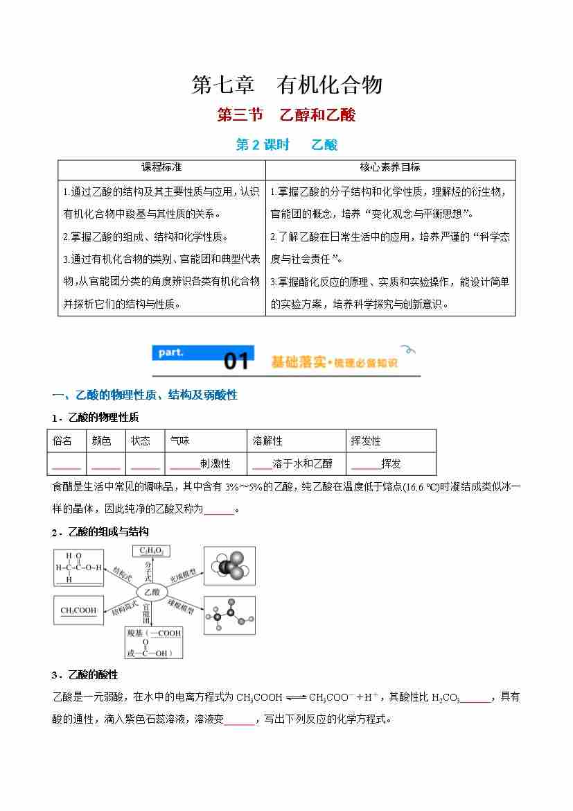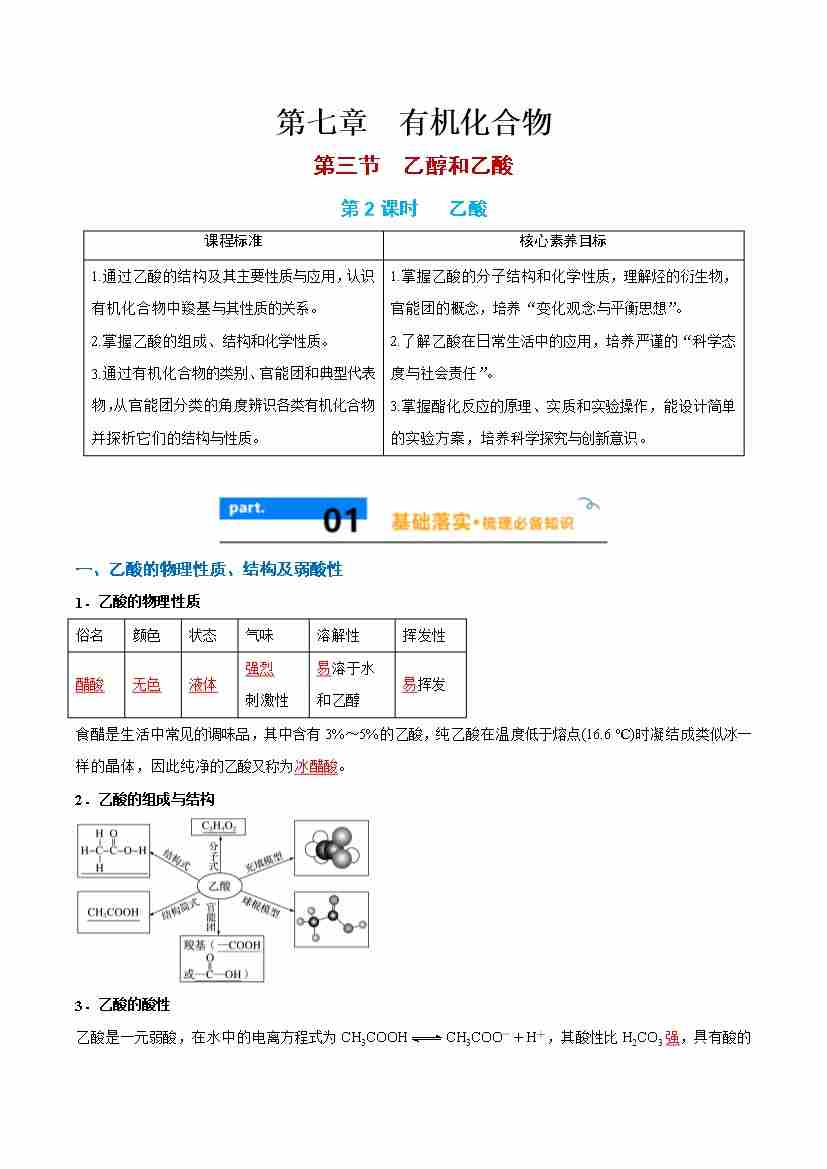 7.3.2 乙酸 - (人教版必修第二册)(学生版)