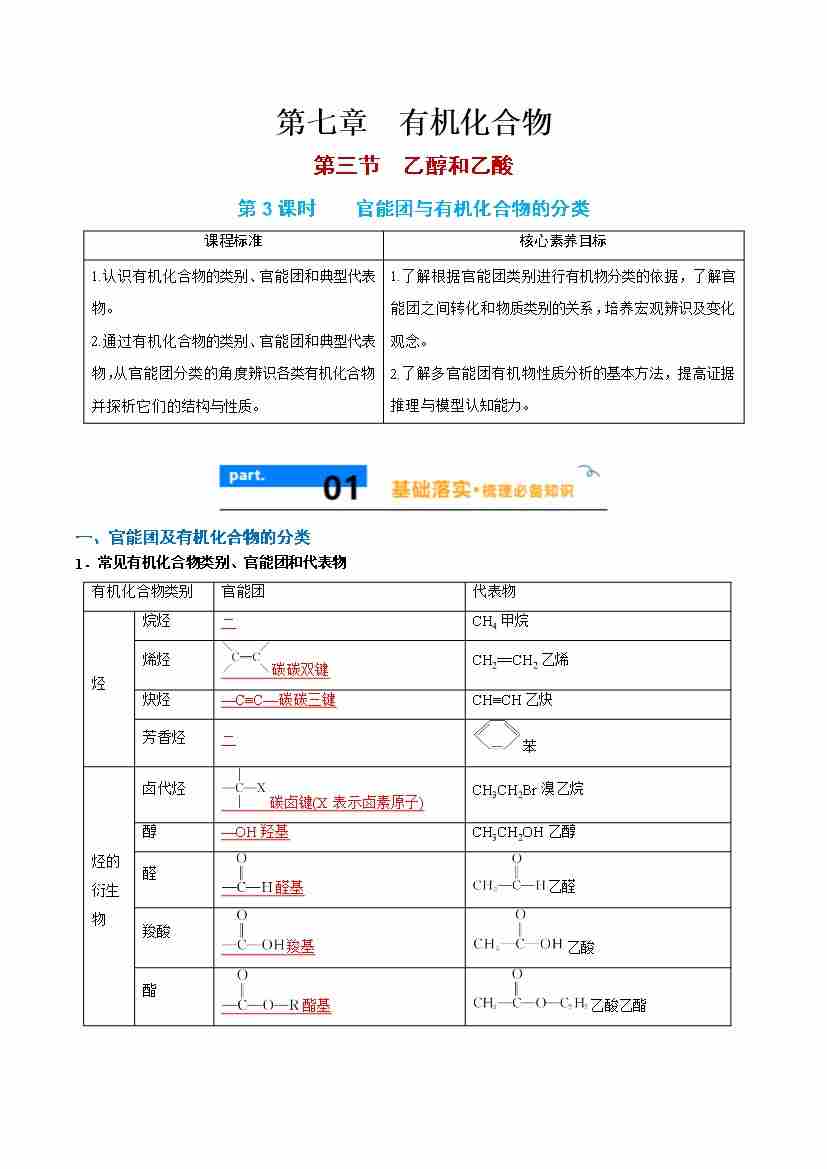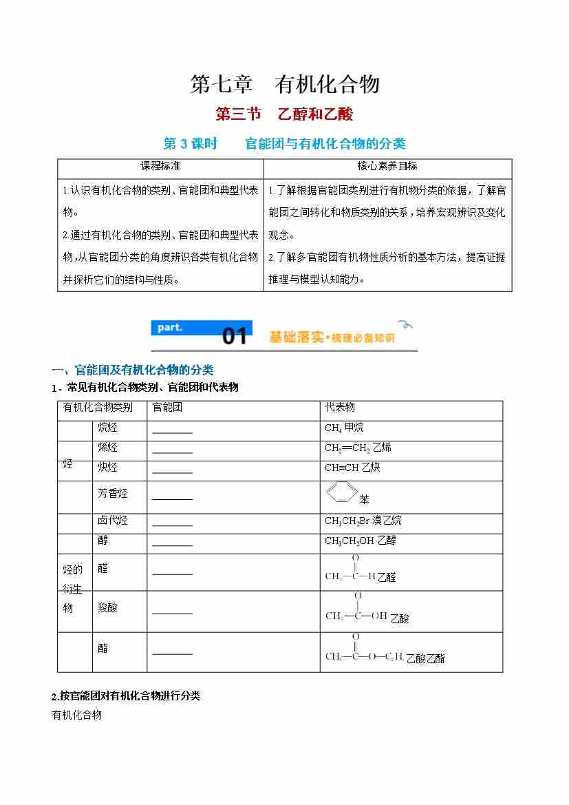 7.3.3 官能团与有机化合物的分类 - (人教版必修第二册)(学生版)