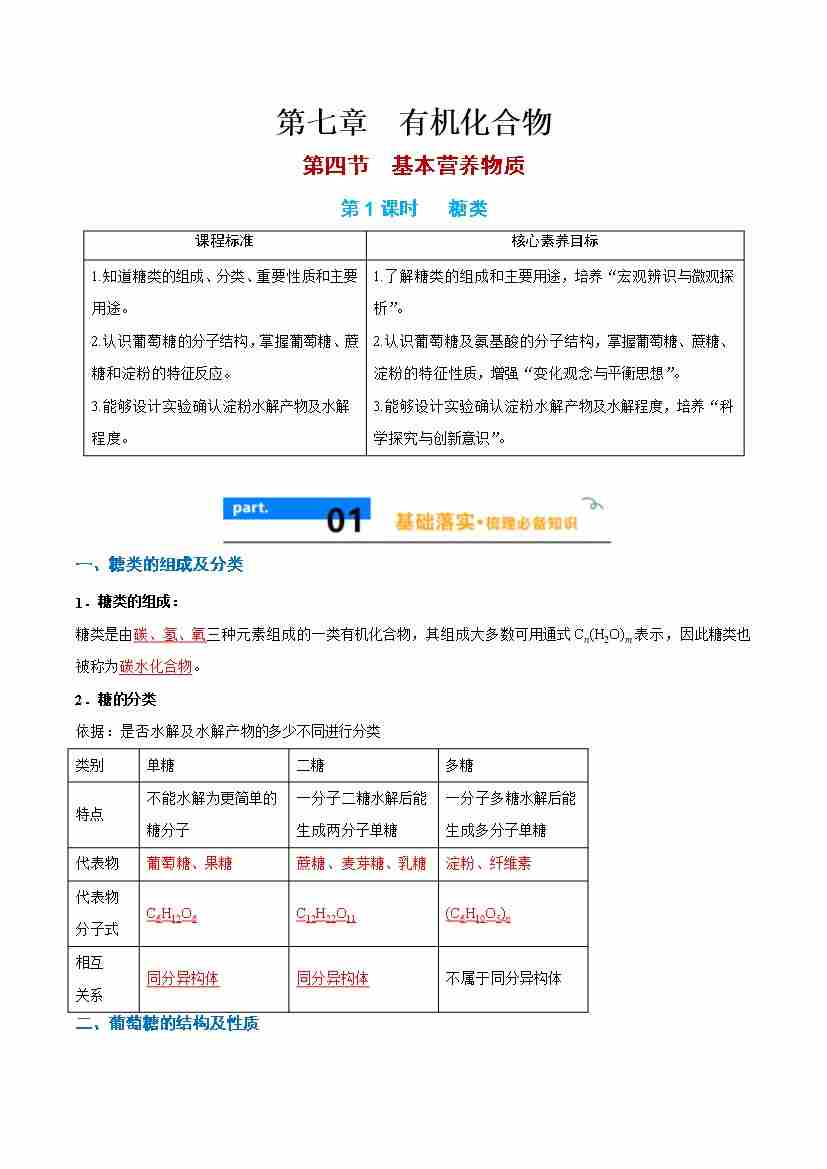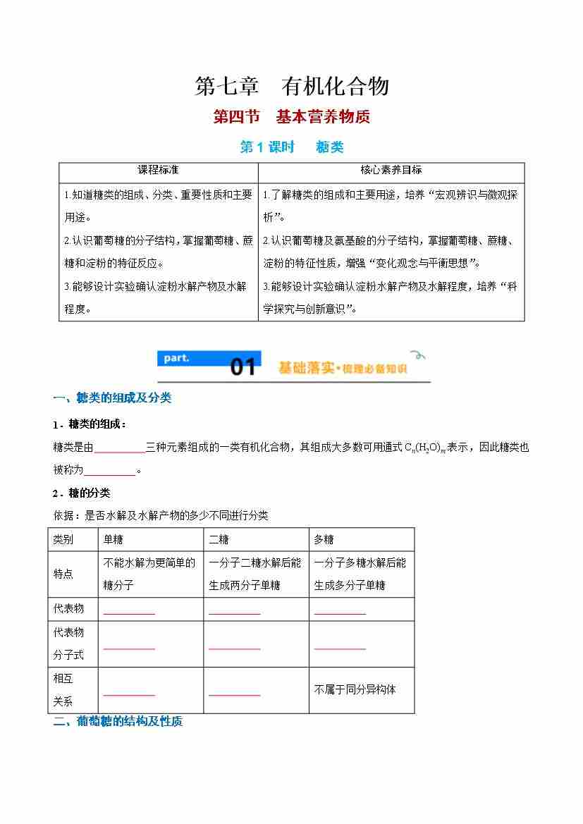 7.4.1 糖类 - (人教版必修第二册)(学生版)