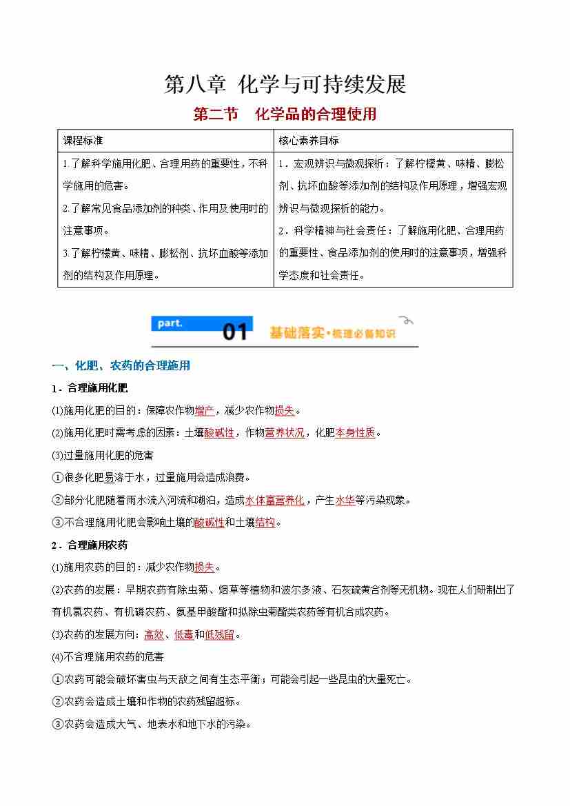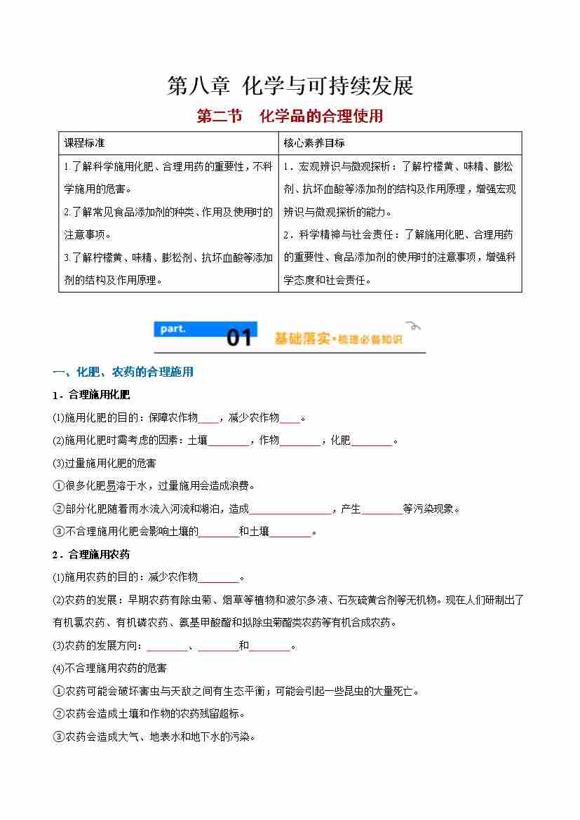 8.2 化学品的合理使用 -(人教版必修第二册)(学生版)